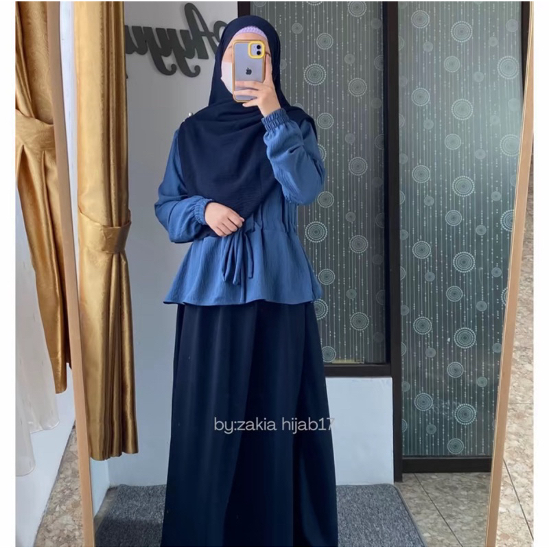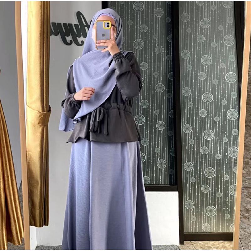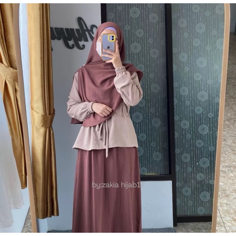Set Baju Gamis Remaja Dewasa Busui Zahra Cringkel Premium BusuinMuslim Simple Kondangan