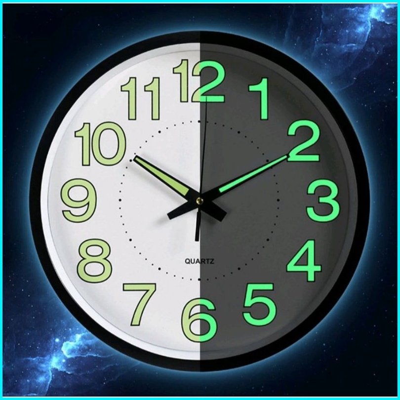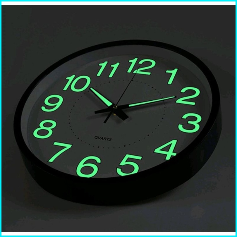 Jam Dinding Bulat Solid Bersinar Dalam Gelap