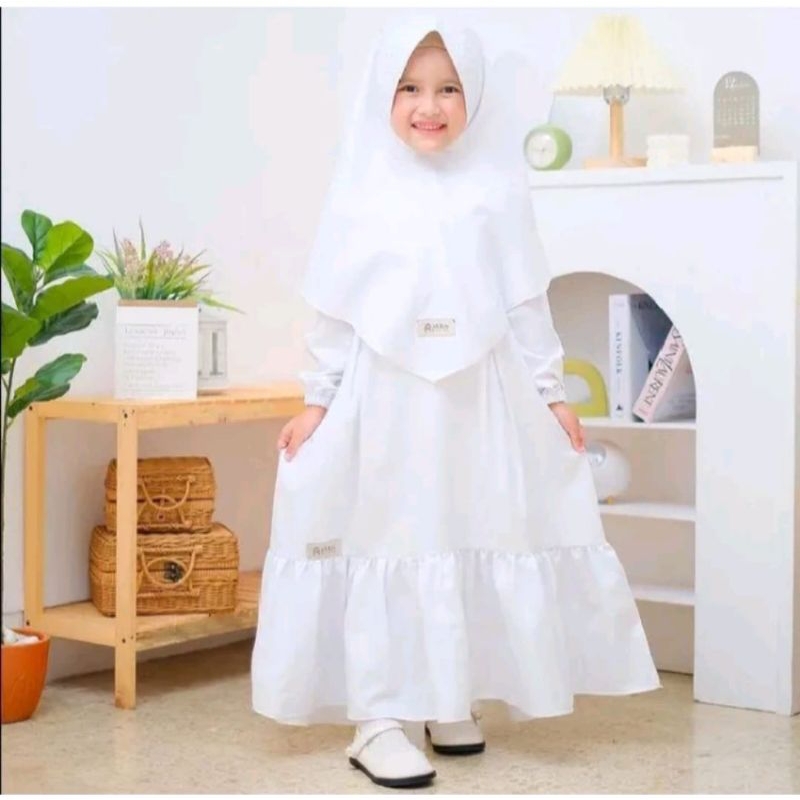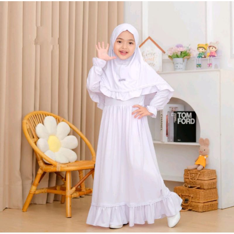 Gamis Anak Putih Manasik Haji Set Hijab Usia 3_10 Tahun Bahan Rayon Twill Premium