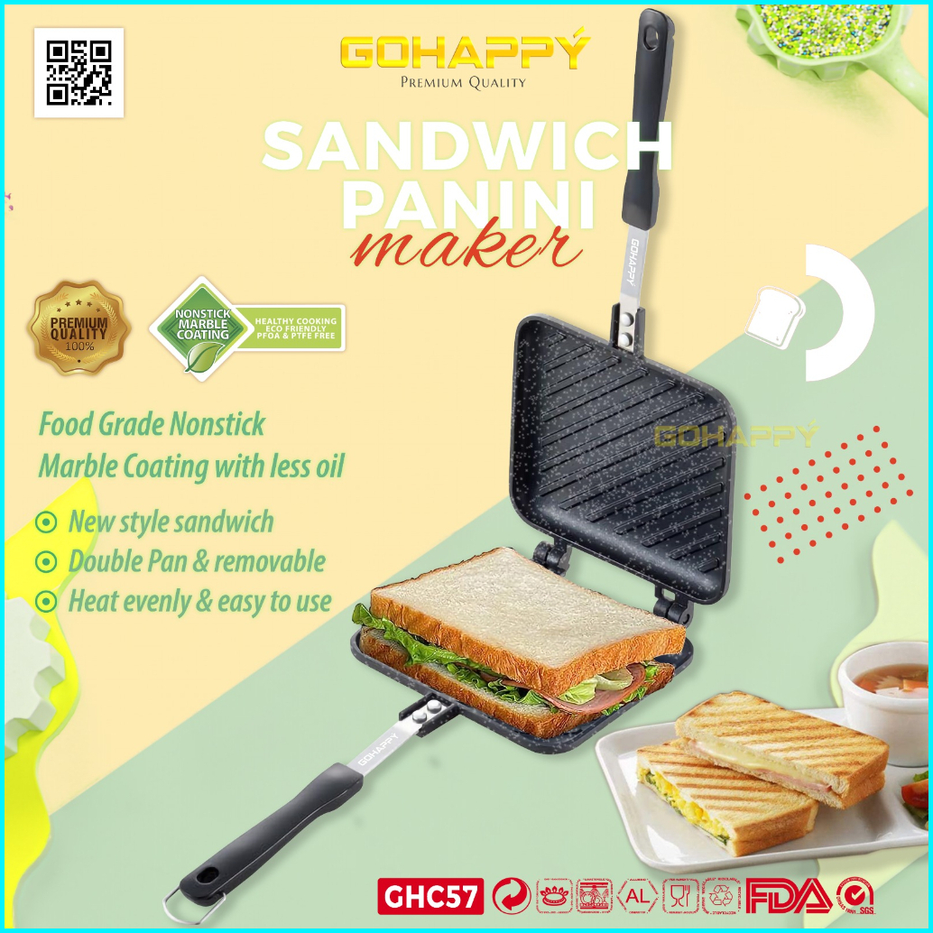 Gohappy Alat Panggang Roti Sandwich Panini Maker Anti Lengket Bread Steak Grillpan Terkenal Di Korea Jepang