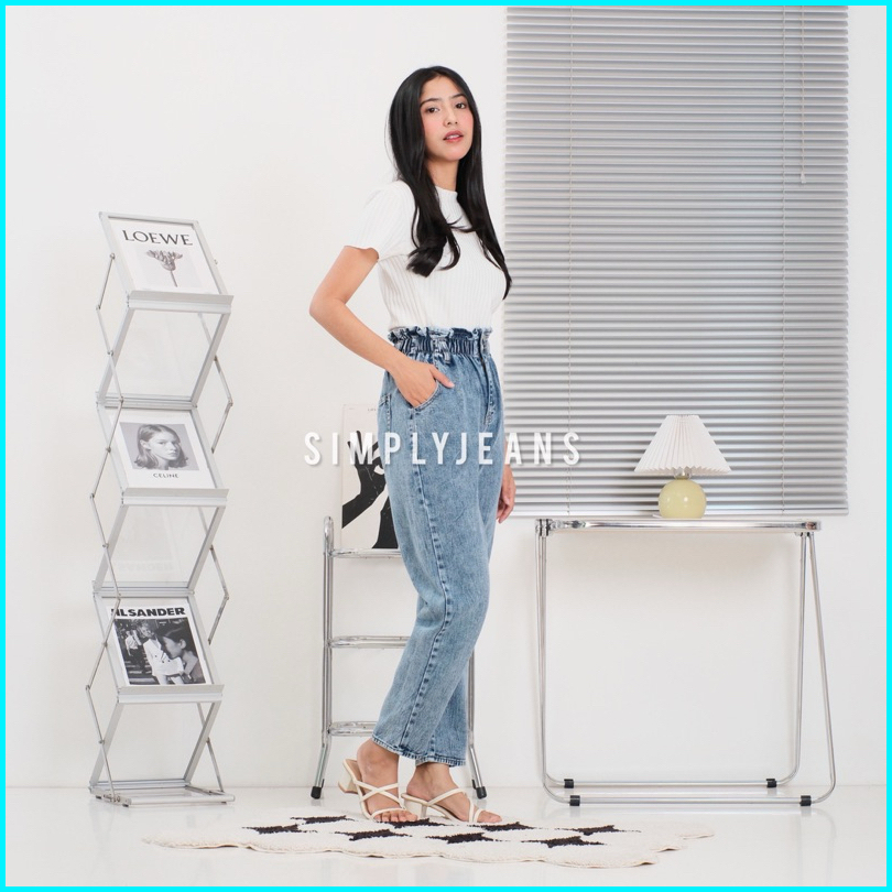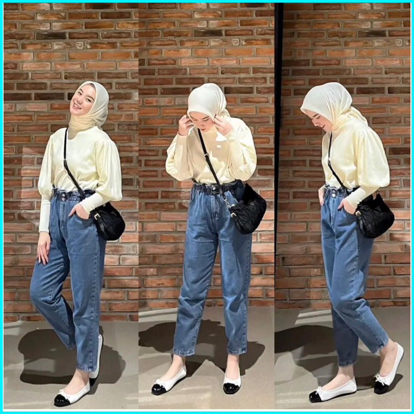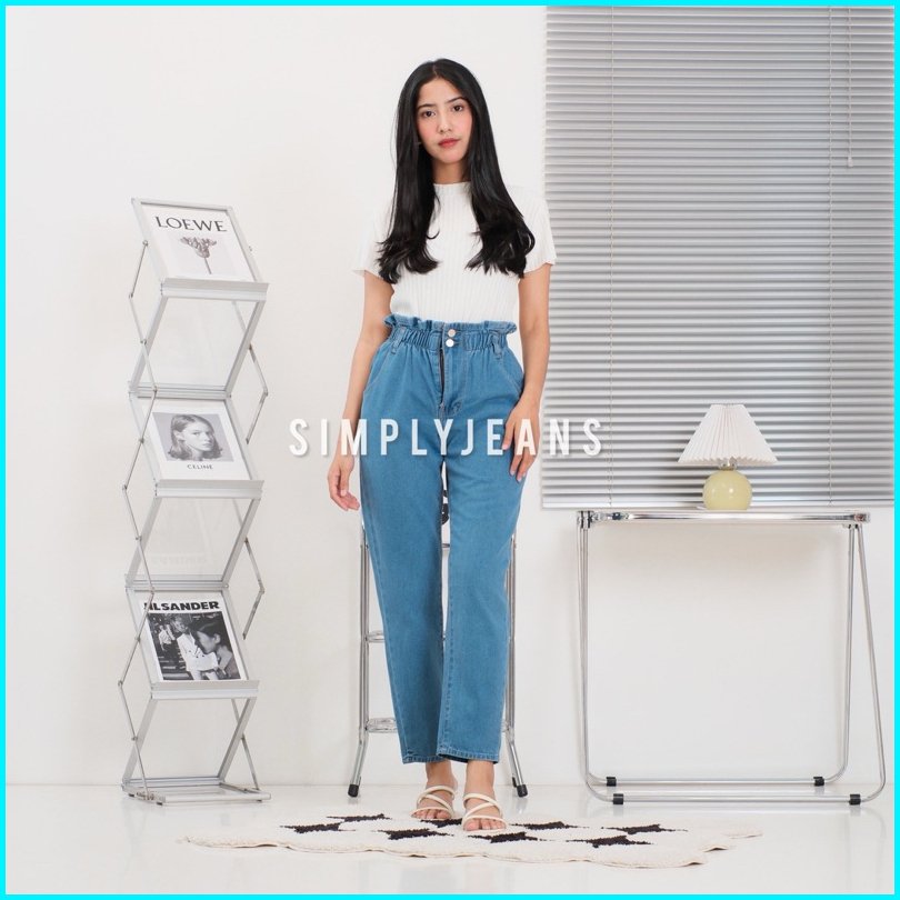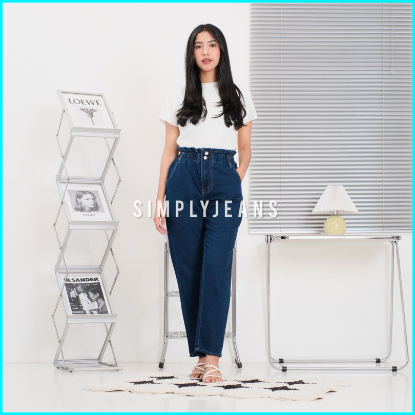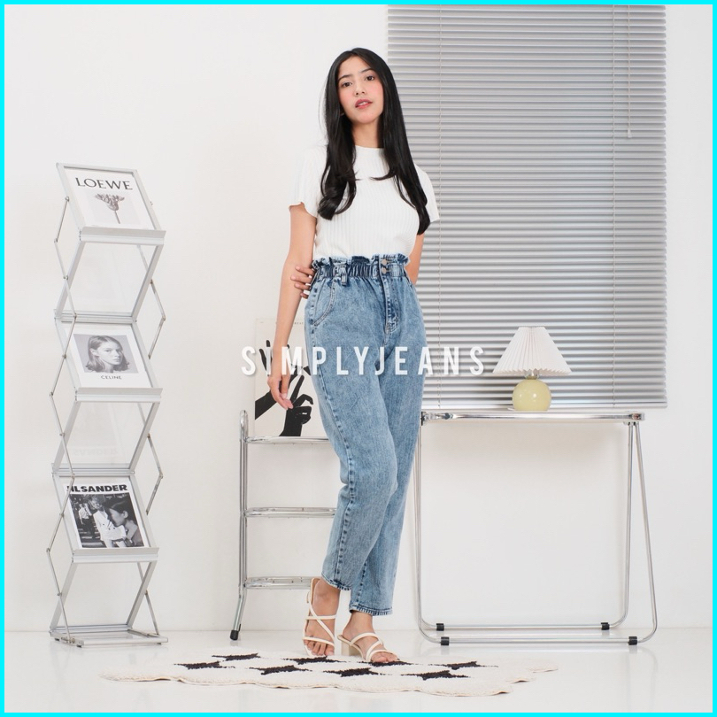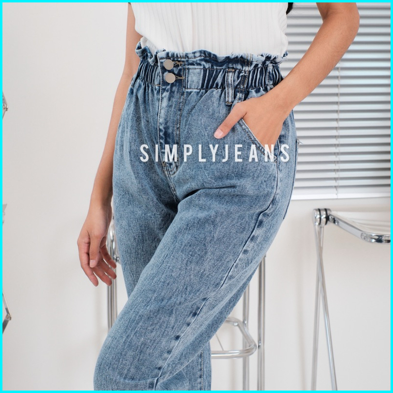 Boyfriend Karet Pinggang Jeans Highwaist -jessie 2 Button