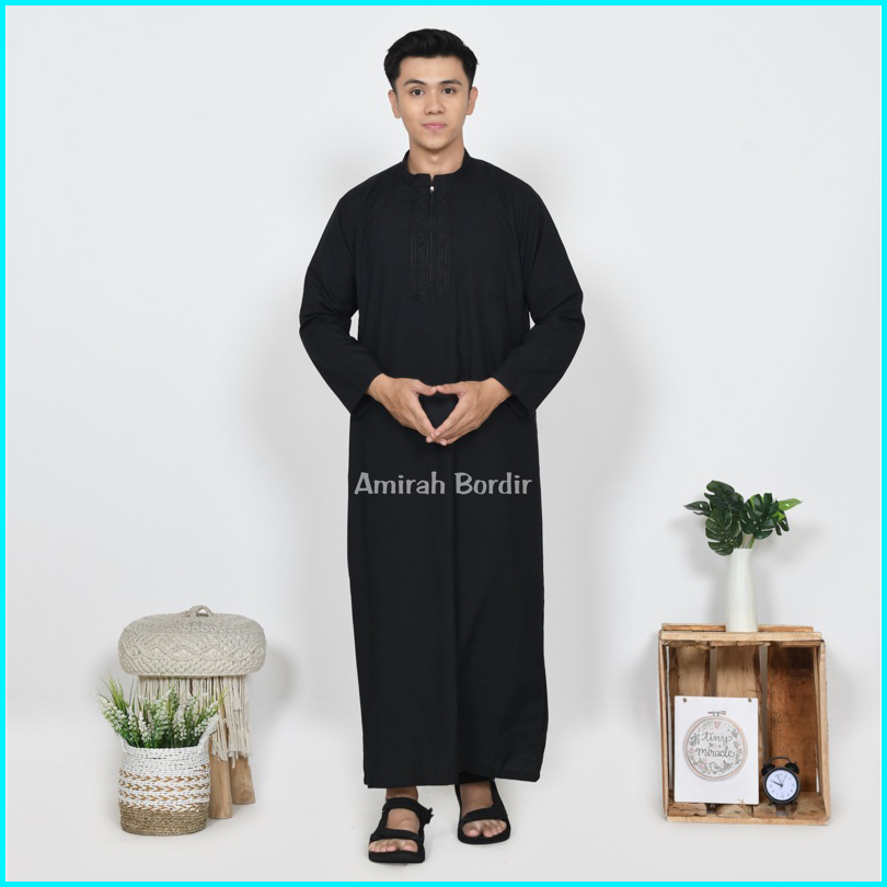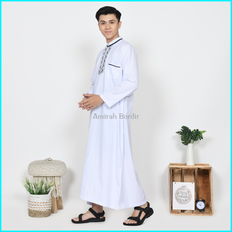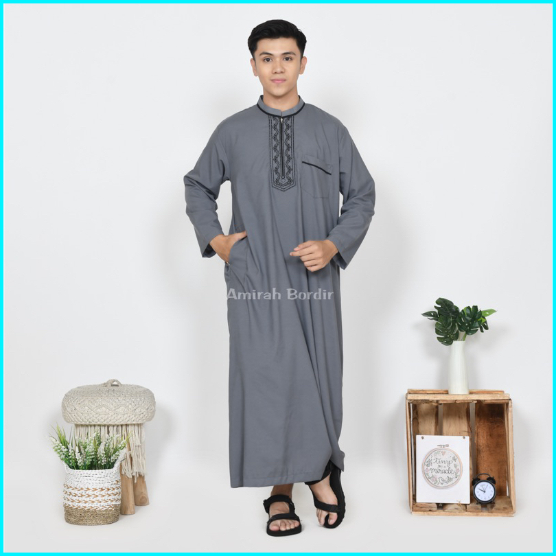 Jubah Laki - Laki Dewasa Bordir Simpel Elegant Gamis Pria Dewasa Lengan Panjang