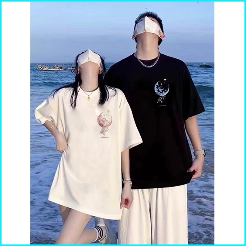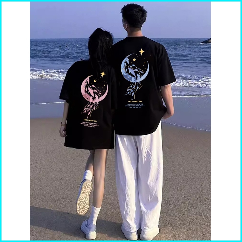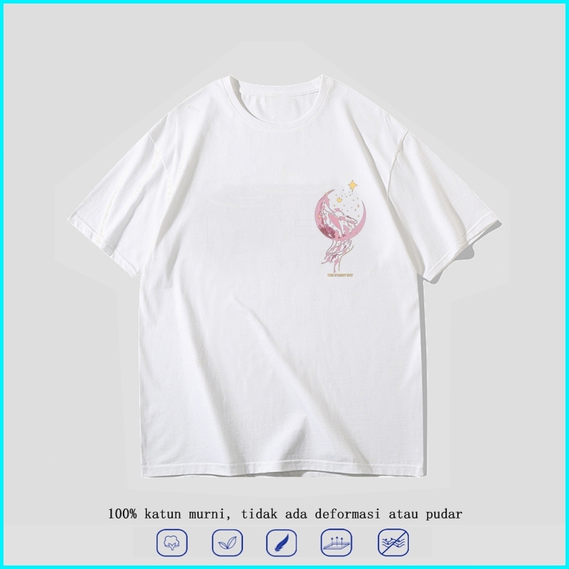 Mode Korea Paus Lumba-lumba Bulan Astronot Planet Baju Kaos Pria T-shirt Wanita T Shirt Pria Couple Pasangan Oversize Co