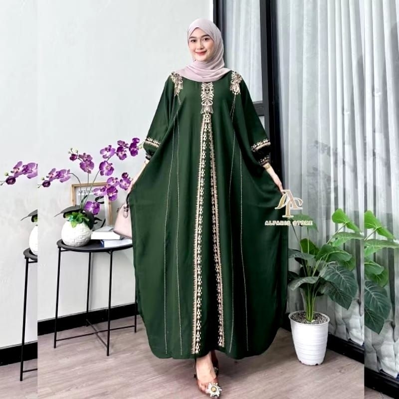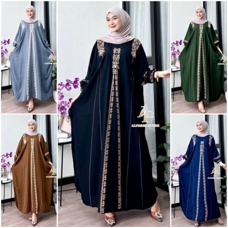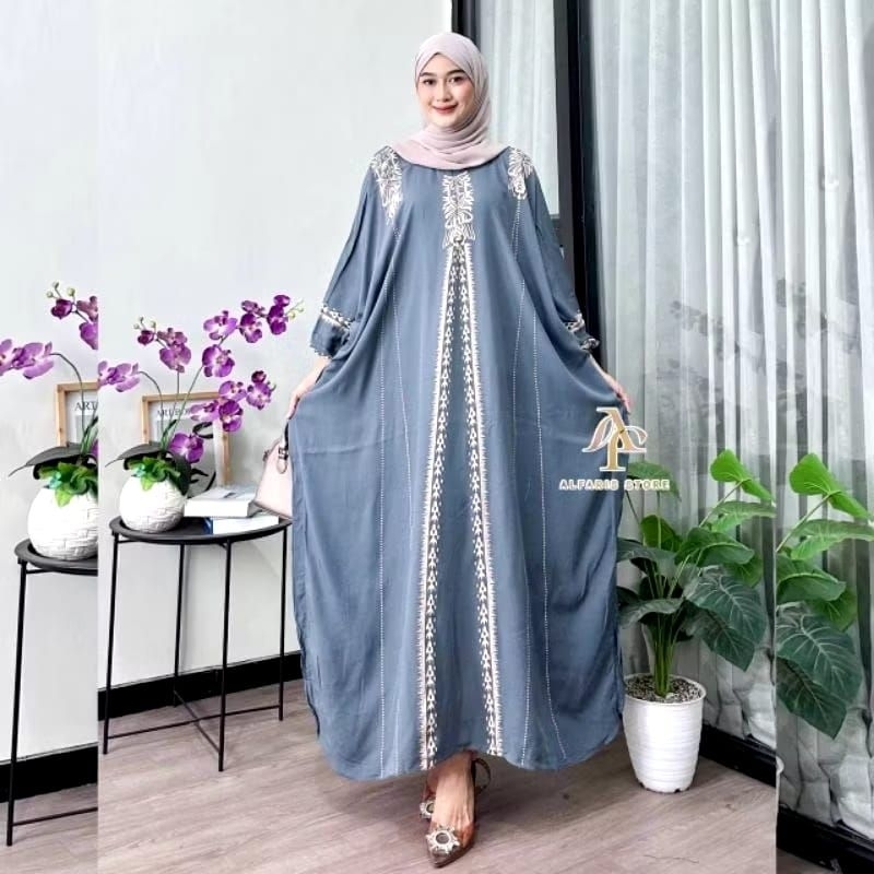 Gamis Kaftan Rayon Jumbo Motif Arafah Busui Friendly