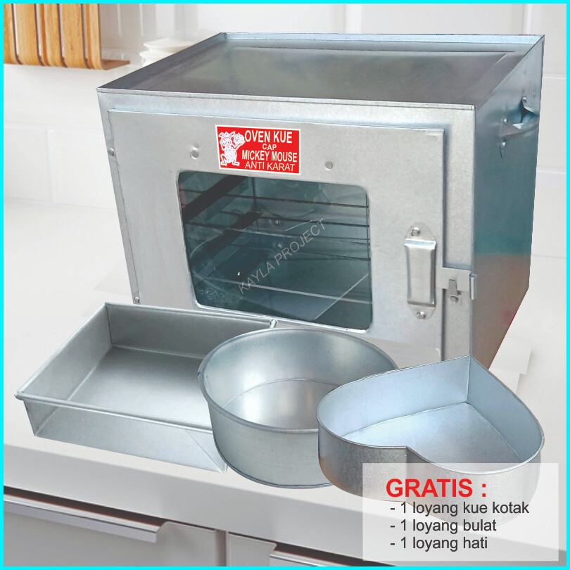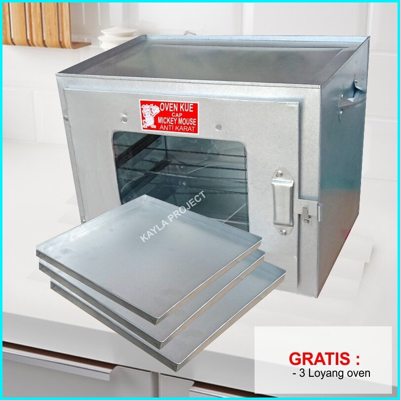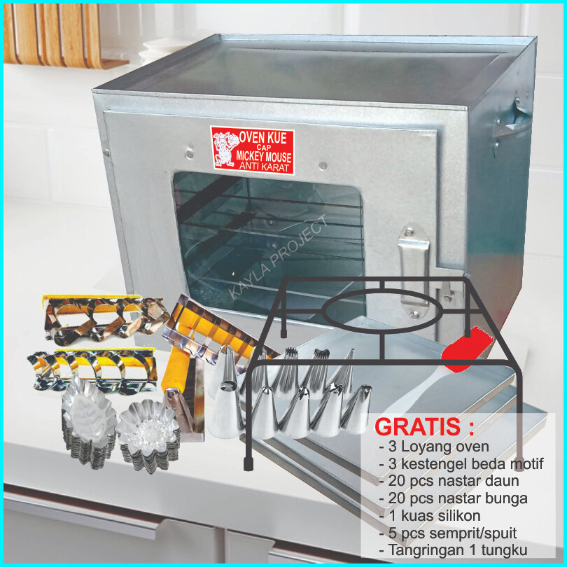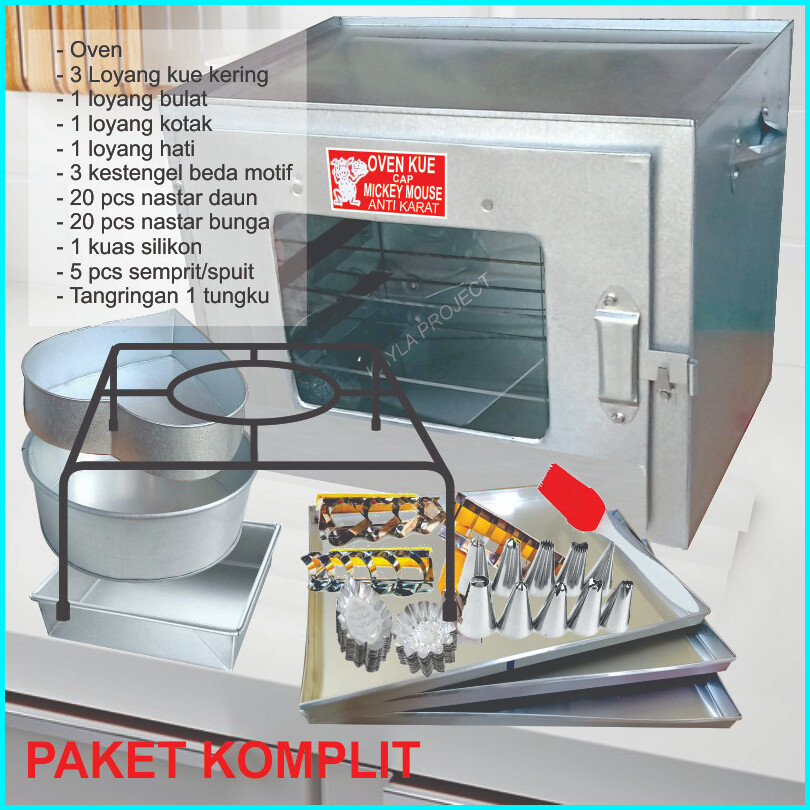 Paket Komplit Oven Tangkring Kompor Open Kue 3 Susun Anti Karat Gratis Loyang Dan Cetakan Kue Kering