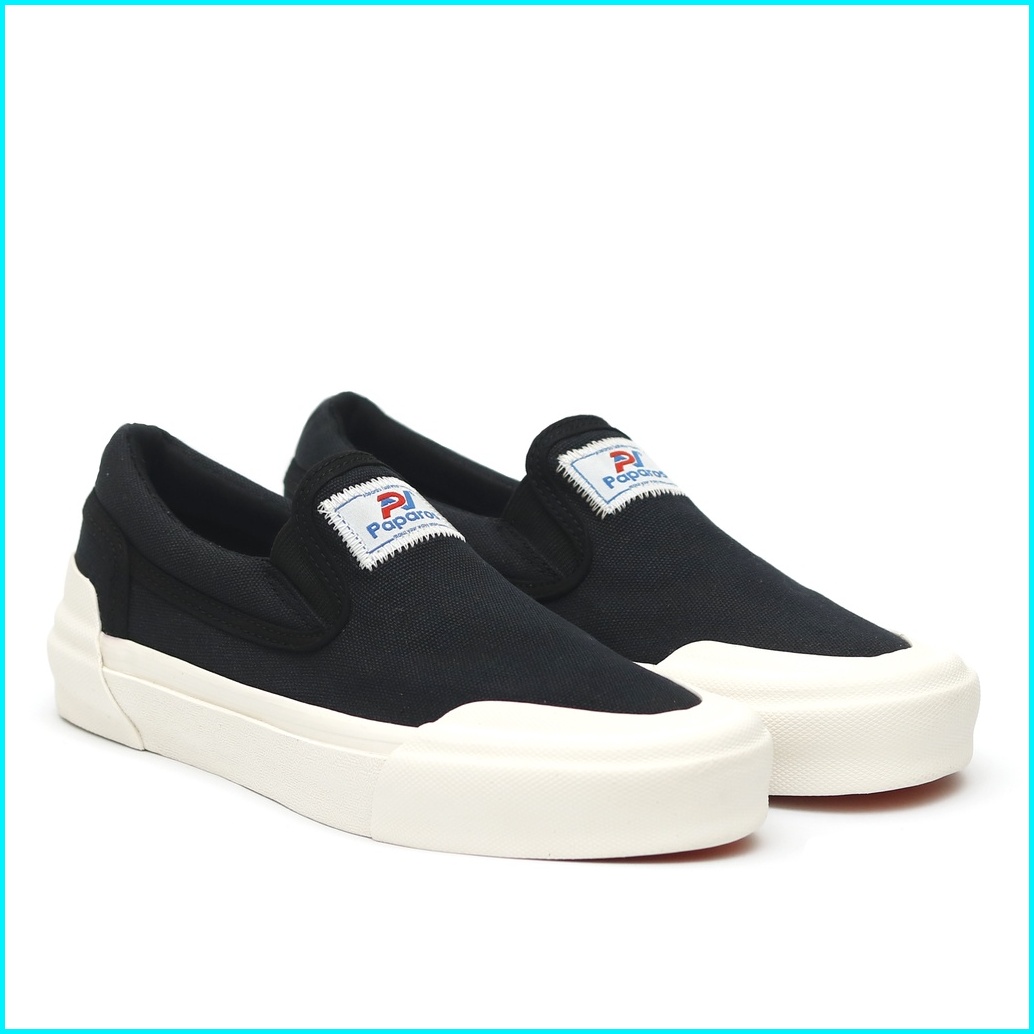 Sepatu Paparos Footwear Slip On Basic Og Black White Sepatu Sneakers Casual Pria Wanita