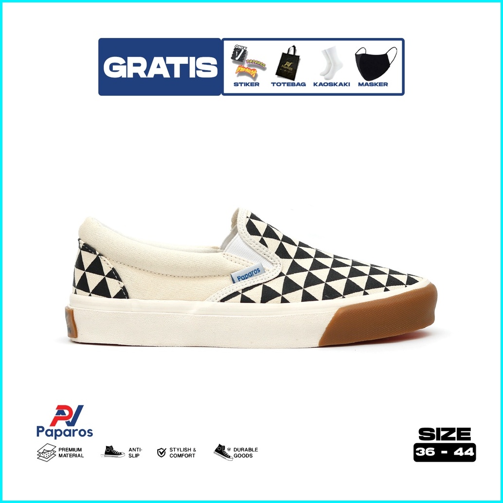 Sepatu Paparos Footwear - Slip On De Valknut Broken White - Sepatu Slip On Casual Pria Wanita