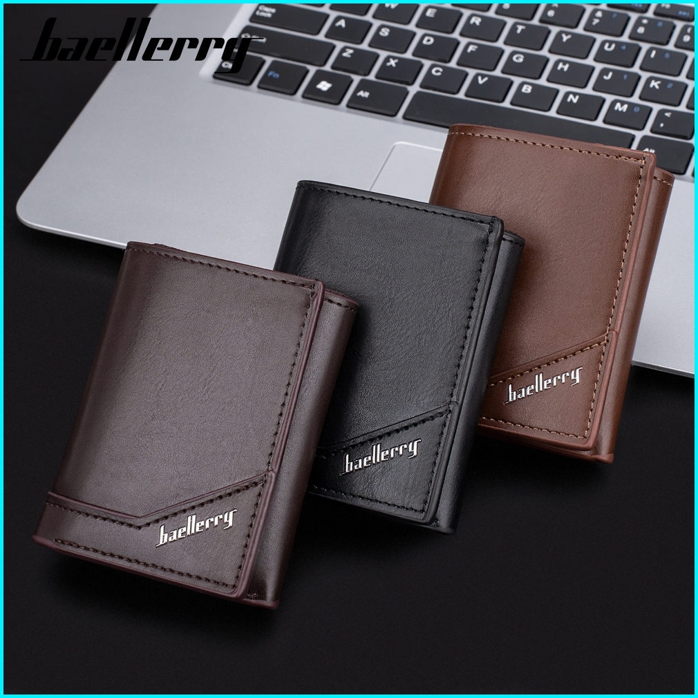 Baellerry K9214 Dompet Pria Lipat Pendek Kartu Bahan Kulit Pu Leather Premium Baeos