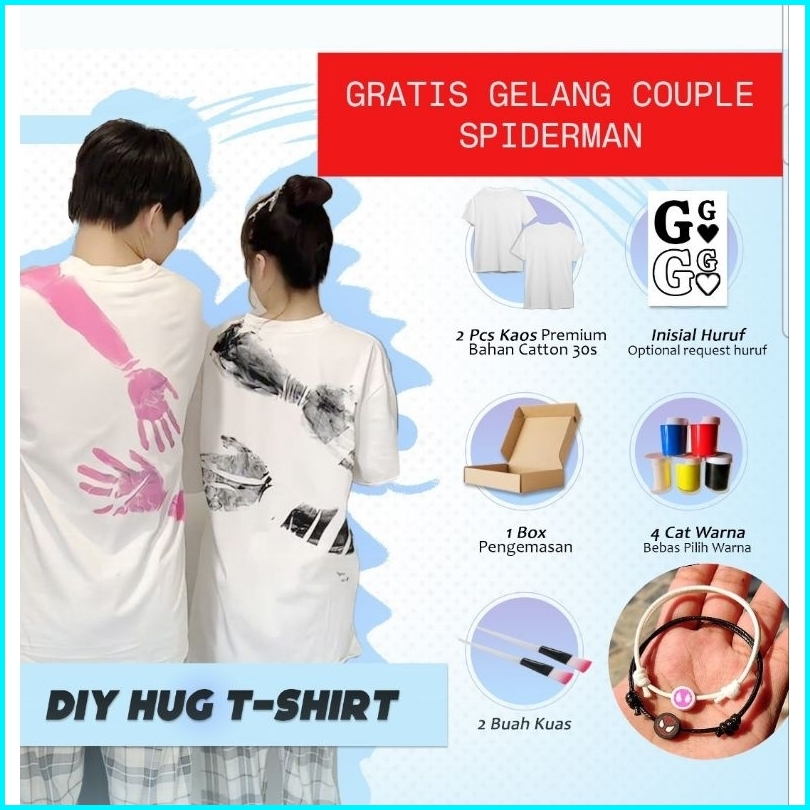 Diy Hug T-shirt 1 Set Lengkap Couple Kaos Polos Katun Cat Berpelukan
