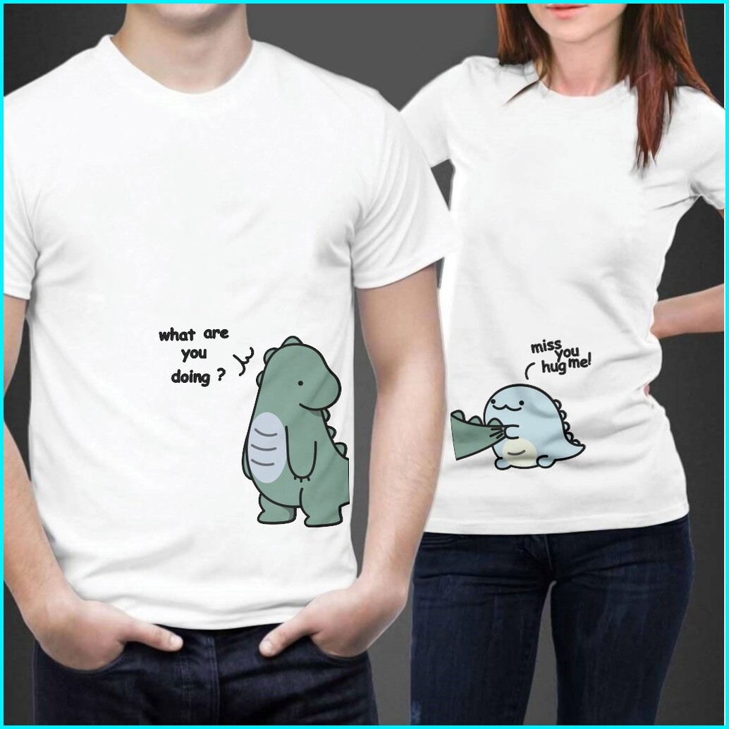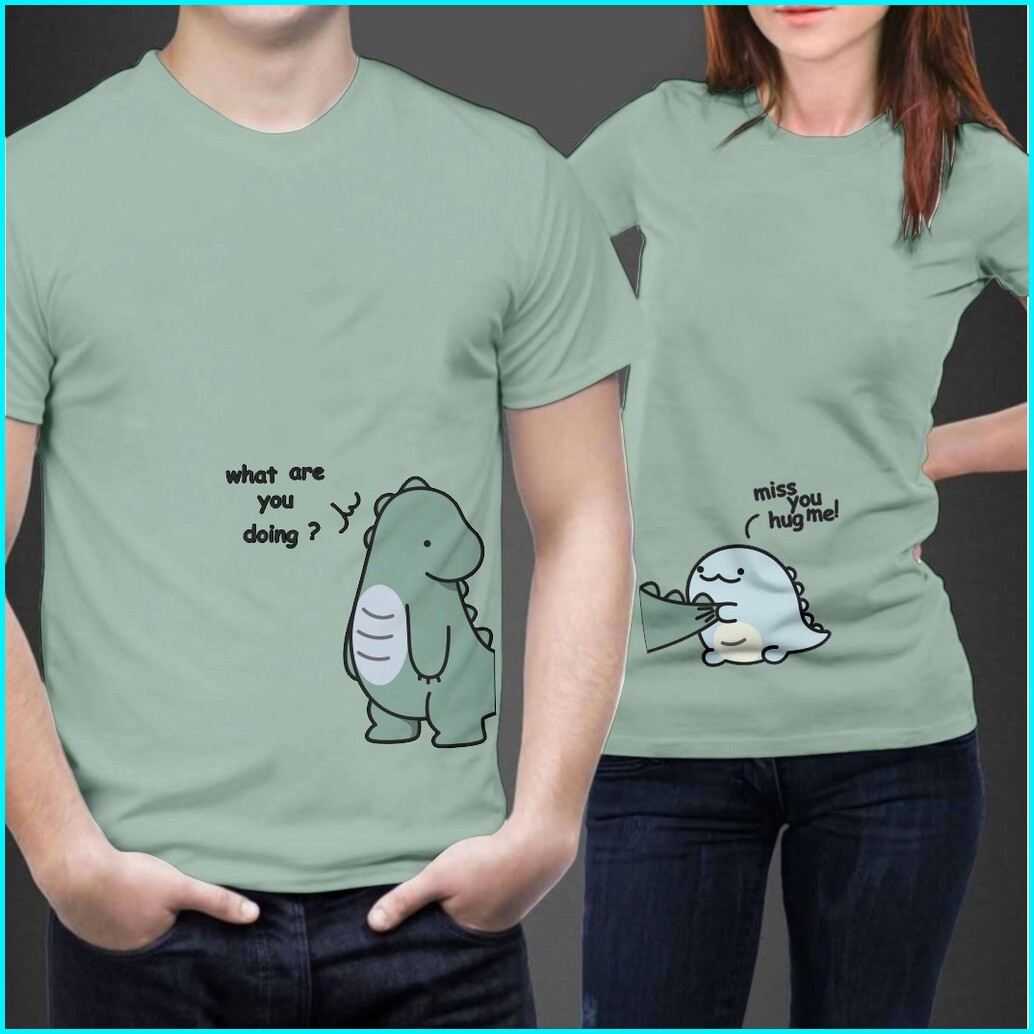 Kaos Couple Kaos Pasangan Print Dino Hug T-shirt
