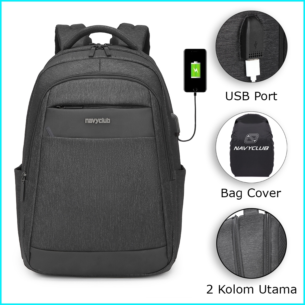 Navy Club Tas Ransel Laptop Cef - Backpack Daypack Usb Port Tas Pria Wanita Free Bag Cover