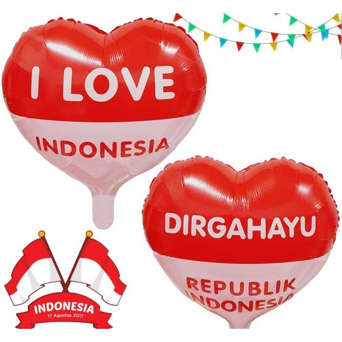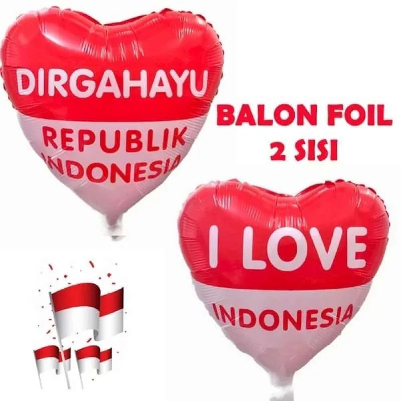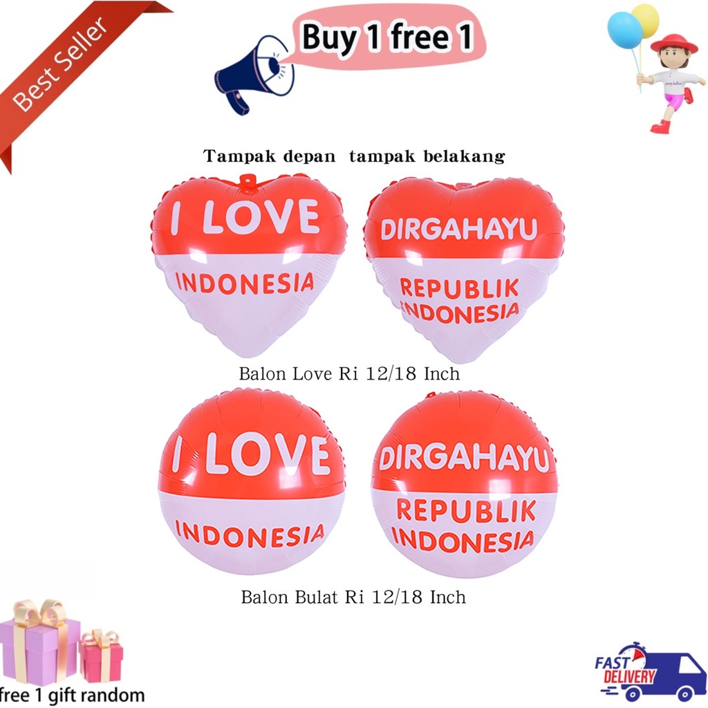 [Star] Balon Foil Love Bulat 12 Inch Dirgahayu Republik Indonesia Merah Putih 17 Agustus HUT RI