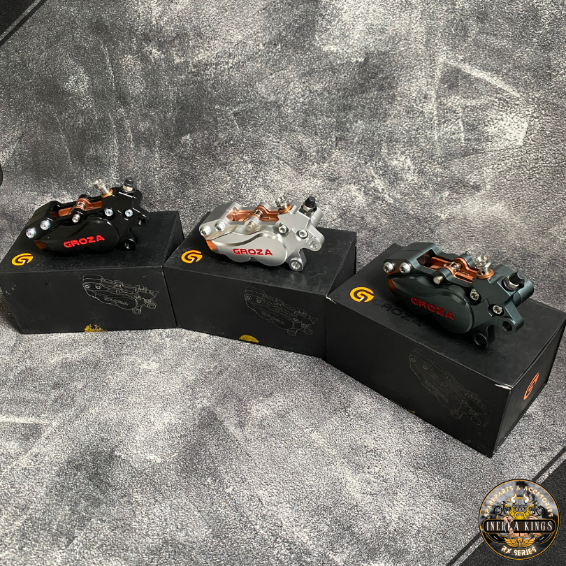 Kaliper Caliper ORIGINAL GROZA Seri NATSUMI Aluminium CNC 4 Piston 4P Motor Yamaha RX KING RXK RXS Hitam Silver Titanium