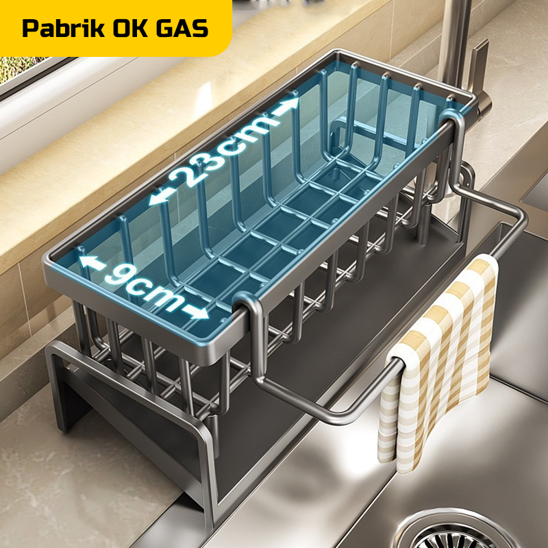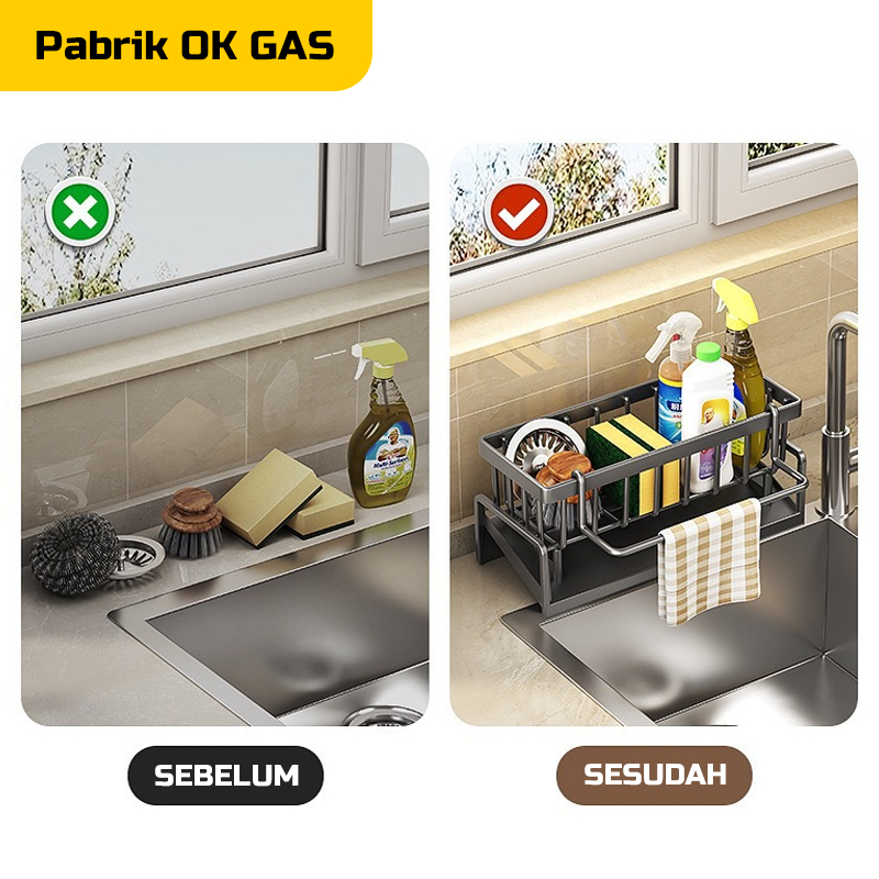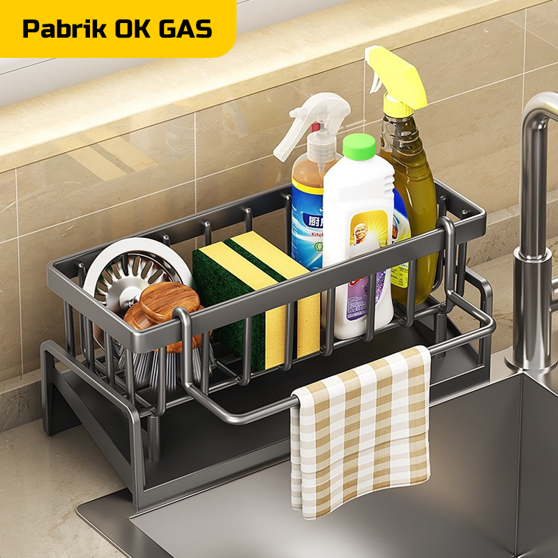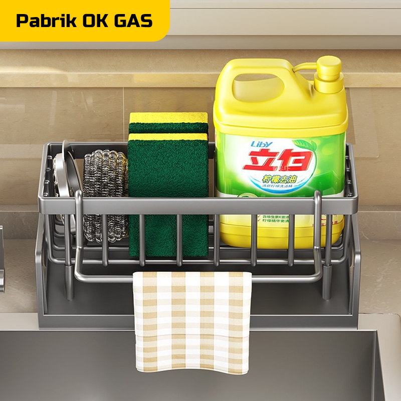 [Mall] POG - Rak Spons Sabun Cuci Piring Rak Wastafel Plastik Multifungsi Tempat Pengering Spons dengan Holder Kain