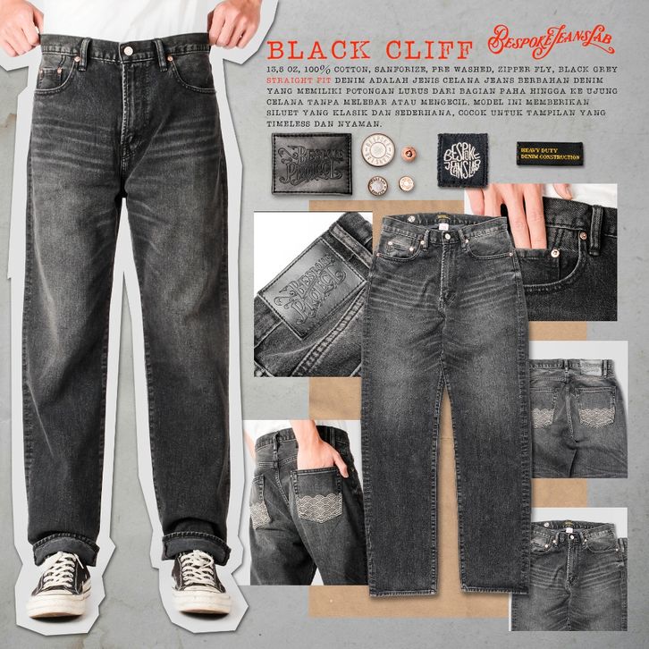 TERLARIS BESPOKE PROJECT - CELANA JENAS PRIA BLACK CLIFFS STRAIGHT FIT PANTS