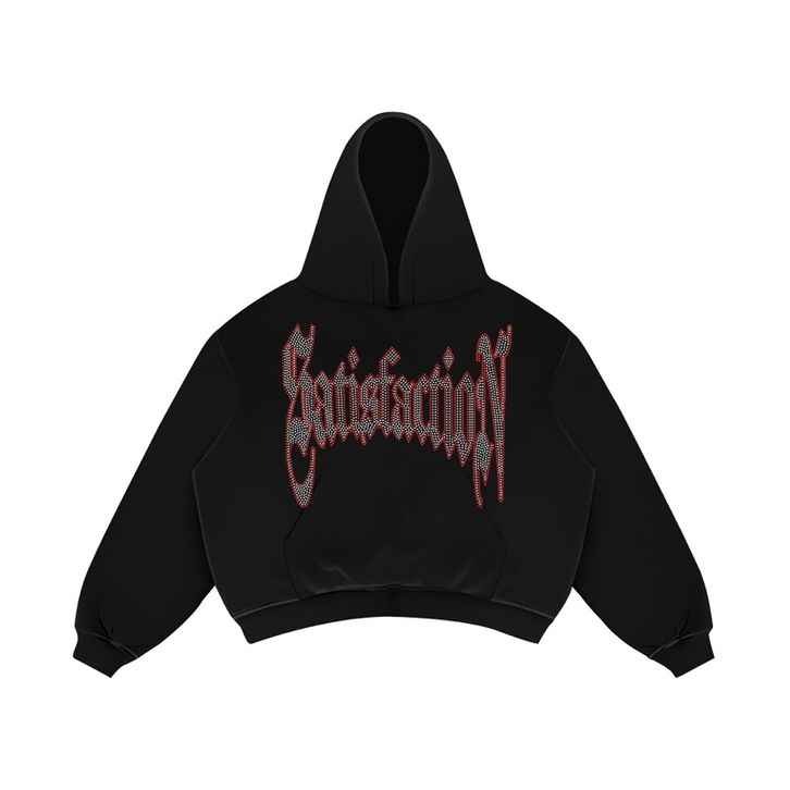 TERLARIS SATISFACTION HOODIE BOXY 375GSM RHINESTONE BLEACH BLACK
