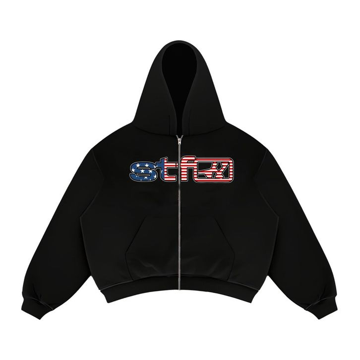 TERLARIS SATISFACTION HOODIE ZIPPER BOXY 375GSM FLAG BLACK