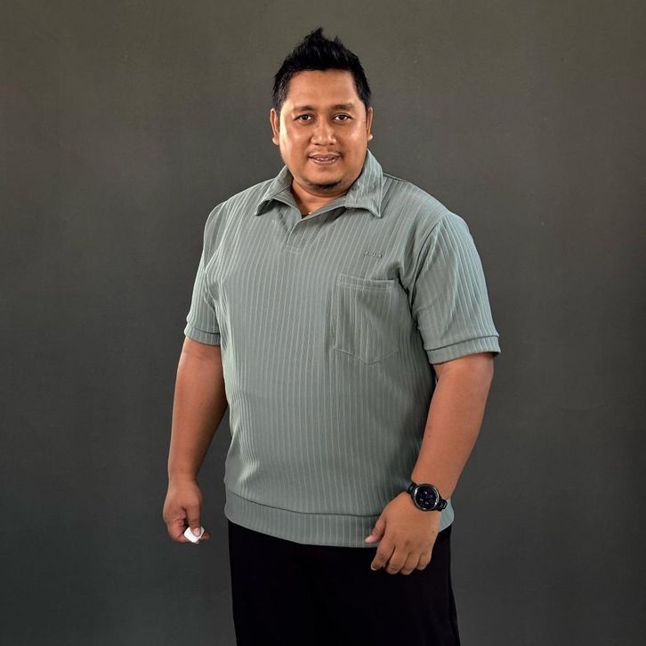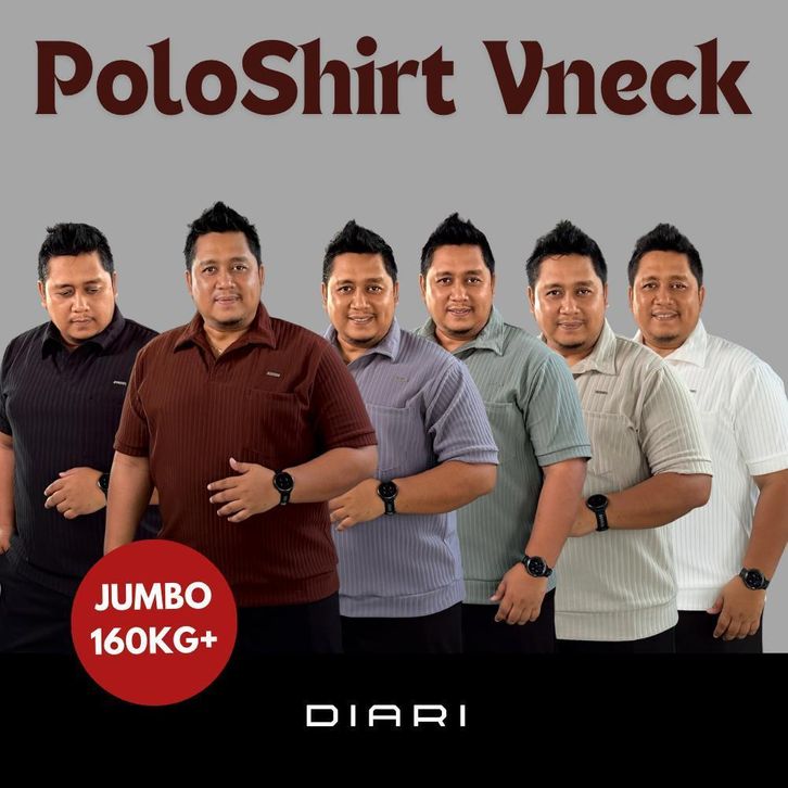 Polo Shirt V Neck Soft Knit Jumbo Bigsize Kemeja Kaos Polo Pendek Clean Outfit Diari