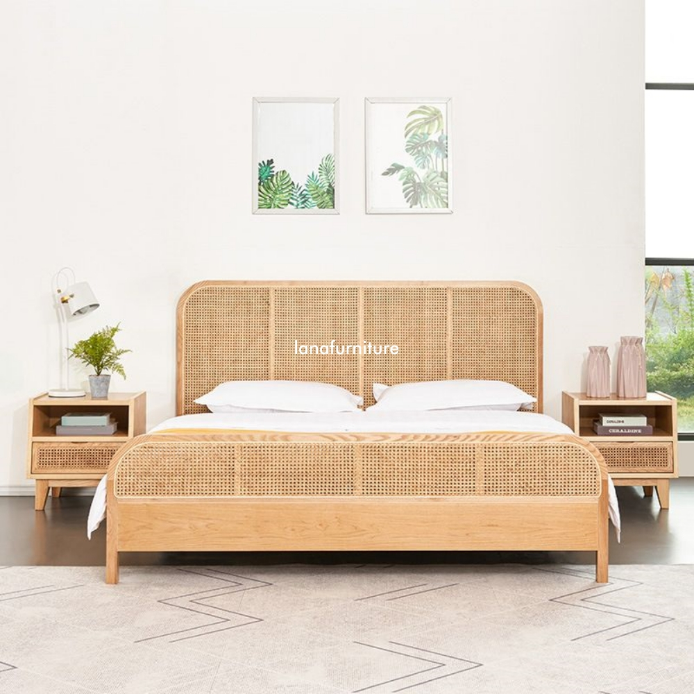 Dipan minimalis tempat tidur anak dewasa kayu jati kombinasi rotan