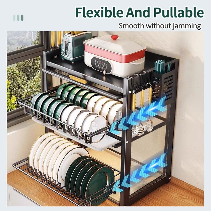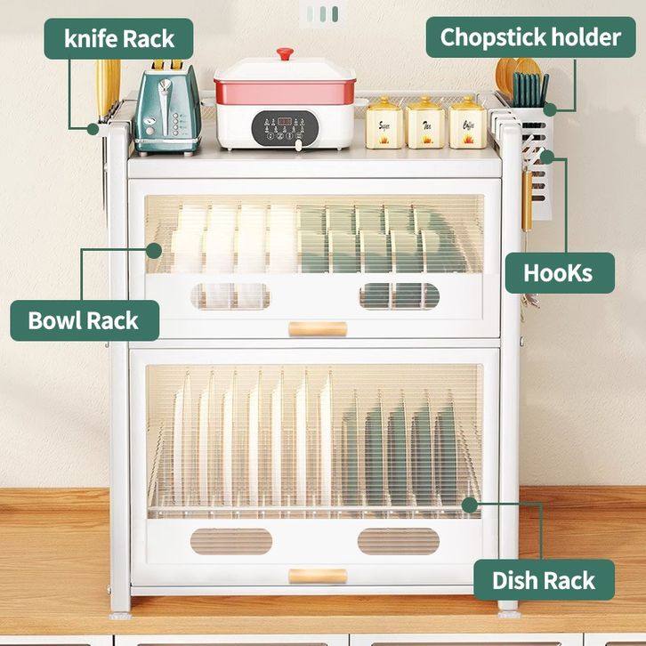 rak piring GSLIFE Rak Piring Tertutup Rak Piring 2/3 Tingkat Rak Dapur Multifungsi Lemari Piring Anti Debu Rak Dapur De