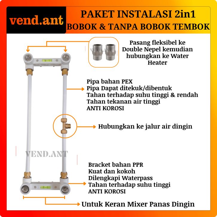 Water heater gas Paket Instalasi 2in1 Double Bracket Luar Dalam Bobok Tanpa Bobok Tembok Water Heater Gas