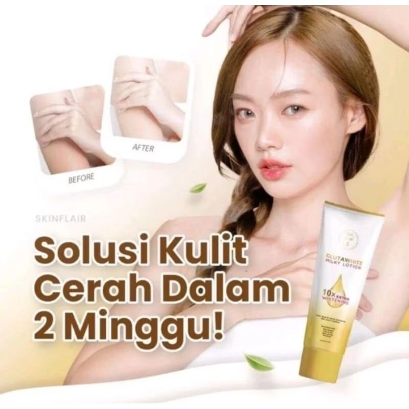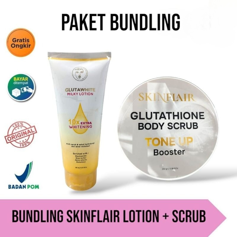 SKINFLAIR BUNDLING LOTION & SCRUB GLUTAWHITE MILKY BODY LOTION BODY SCRUB SKINFLAIR TONR UP BOOSTER MECERAHKAN TUBUH BPO