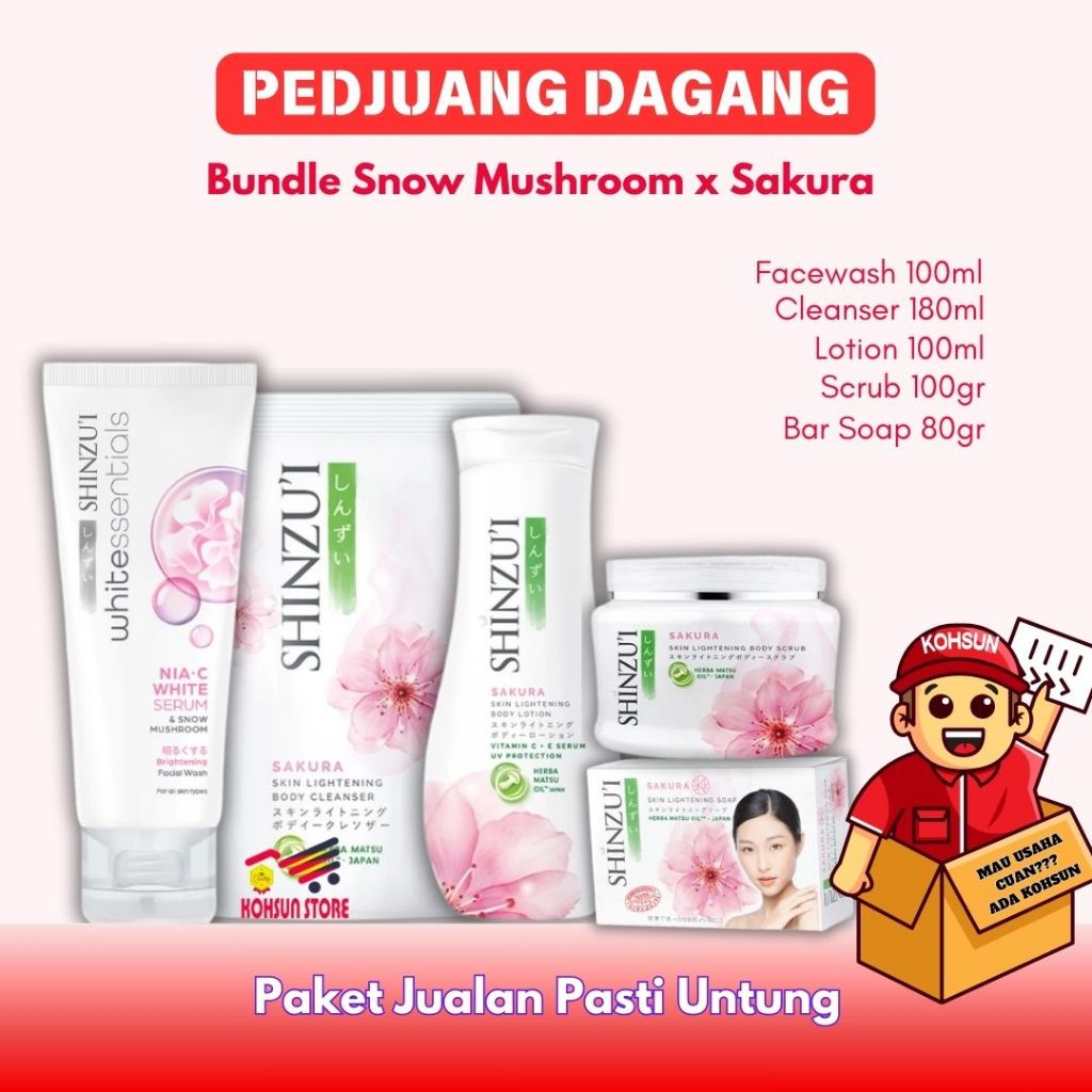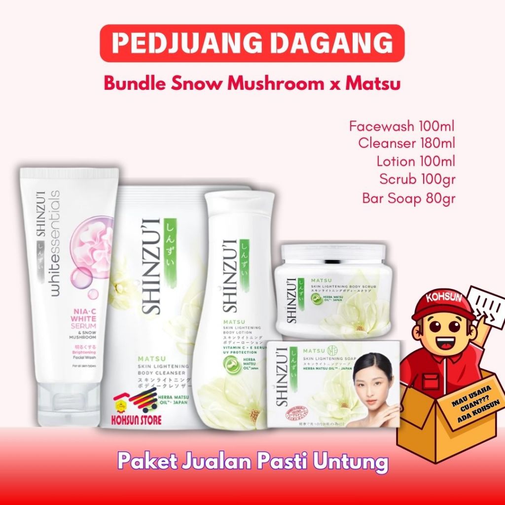 PAKET 5IN1 SHINZUI NIA-C WHITE SERUM & SNOW FACE WASH + CLEANSER BODY LOTION SCRUB BARSOAP