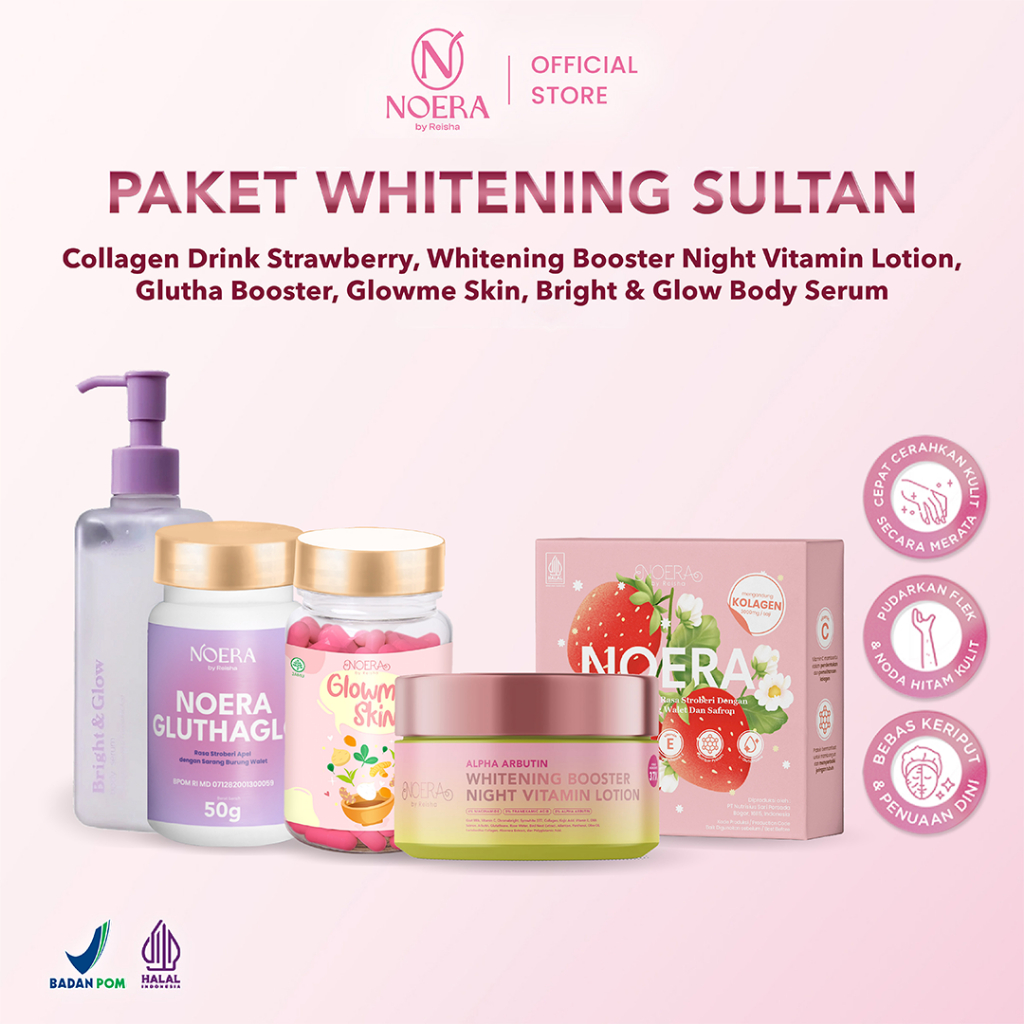 NOERA PAKET WHITENING SULTAN | NOERA BRIGHT & GLOW BODY SERUM + GLUTHA BOOSTER + GLOW ME SKIN + WHITENING BOOSTER NIGHT