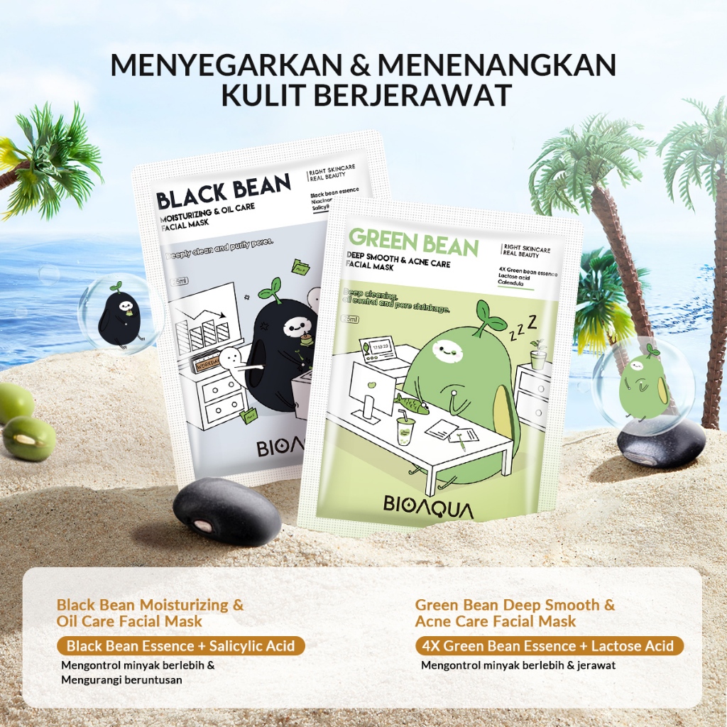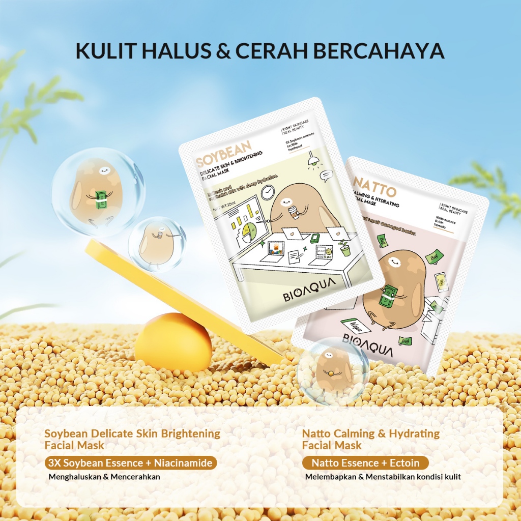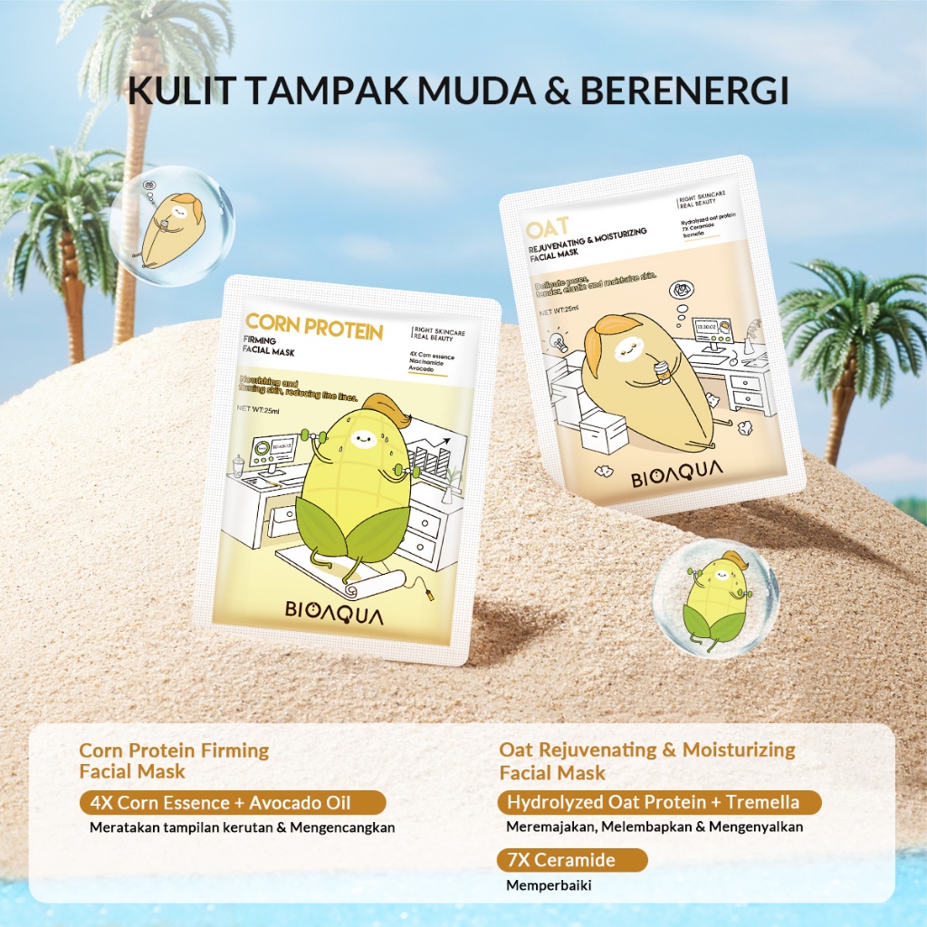 BIOAQUA MASKER WAJAH CEREAL SHEET MASK & BIJI BUAH FACE MASK 25ML MASKER MUKA GLOWING RICE-MILK/OAT/RED BEAN/COM PROTEIN