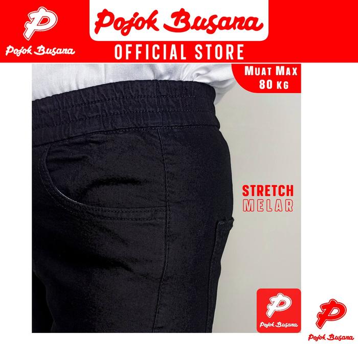 POJOK BUSANA CELANA PANJANG JEANS WANITA LEGGING STRETCH HITAM - LADIES BLACK DENIM JEANS PANTS - CELANA PANJANG HITAM DENIM JEAN CEWEK PINGGANG KARET MELAR - HITAM, M