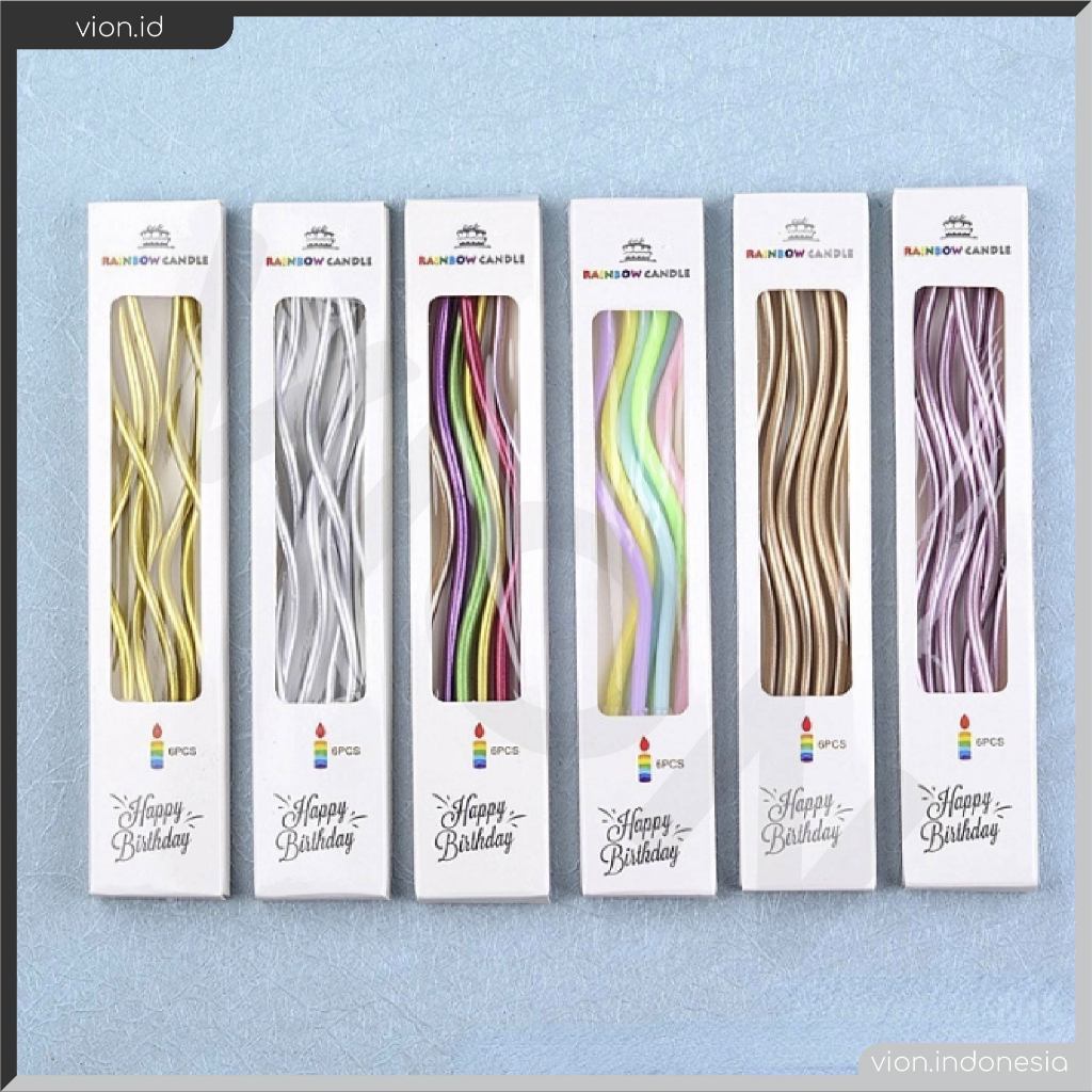 VION LILIN ULIR SPIRAL TWIST SHAPE CANDLE 1 BOX 6PCS BIRTHDAY CAKE LILIN ULANG TAHUN PESTA PP002