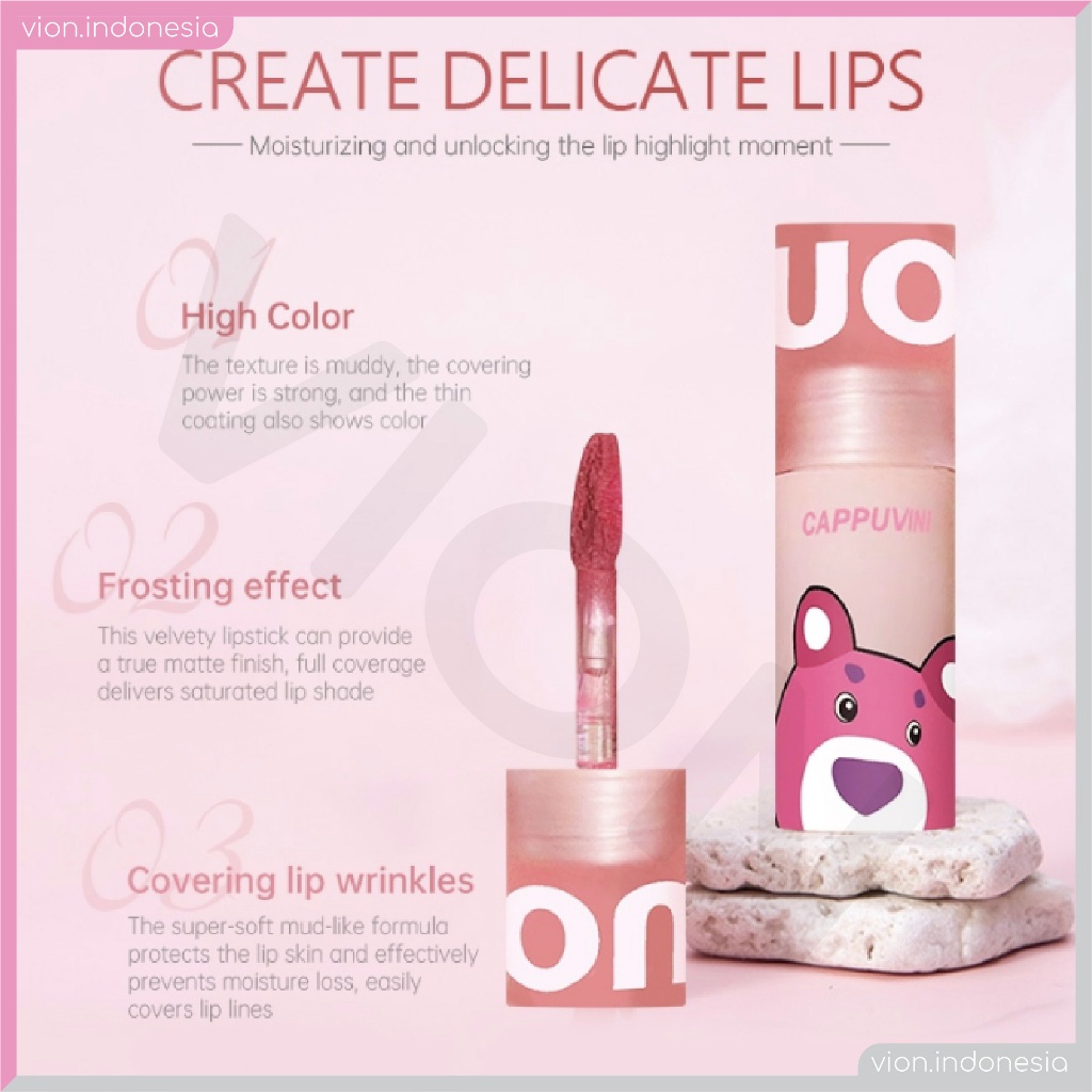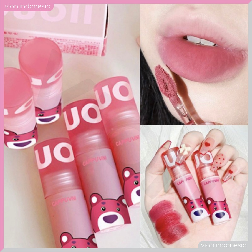 CAPPUVINI LOTSO BEAR MATTE LIP GLAZE VELVET [NO BOX] LIP MUD LIPGLOSS STRAWBERRY KOREA LIPSTIK CA005
