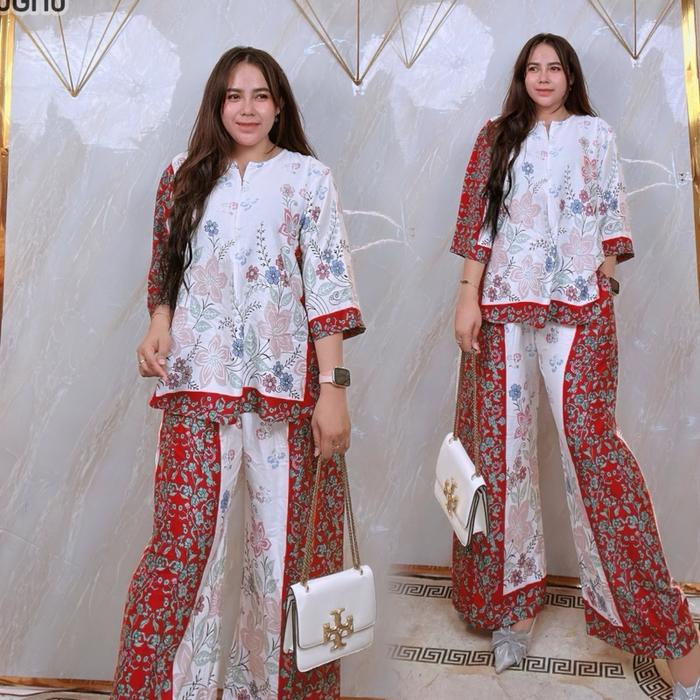 NAILA SET VOL.2 SETELAN WANITA BUSUI BAHAN RAYON ADEM BAJU DEWASA KULOT MOTIF - NILA SET A, ALLSIZE