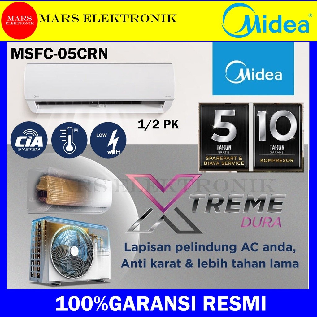 AC MIDEA LOW WATT MSFC-05CRN2X - TURBO MODE 1/2 PK - GARANSI RESMI - SYSTEM CIA