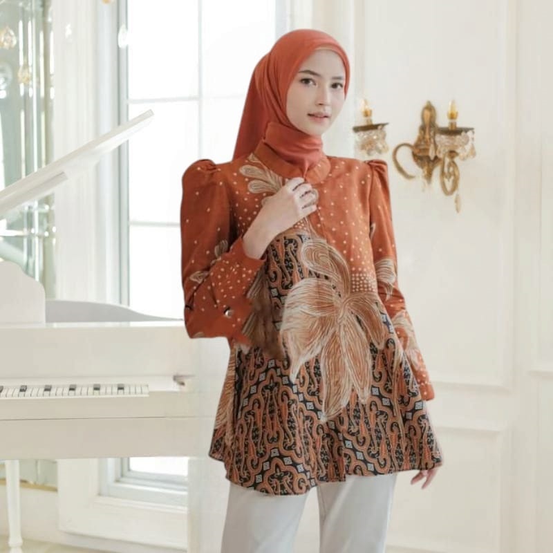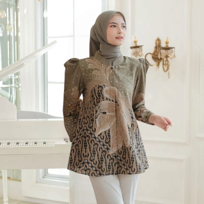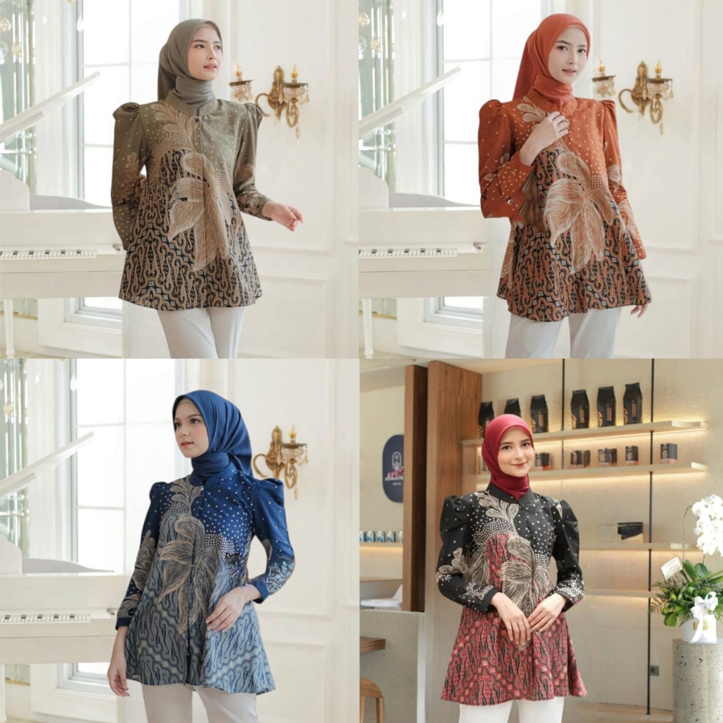 Batik Namara - Blouse Seragam Batik Wanita Modern Lengan Panjang Simple manis, dan busui friendly