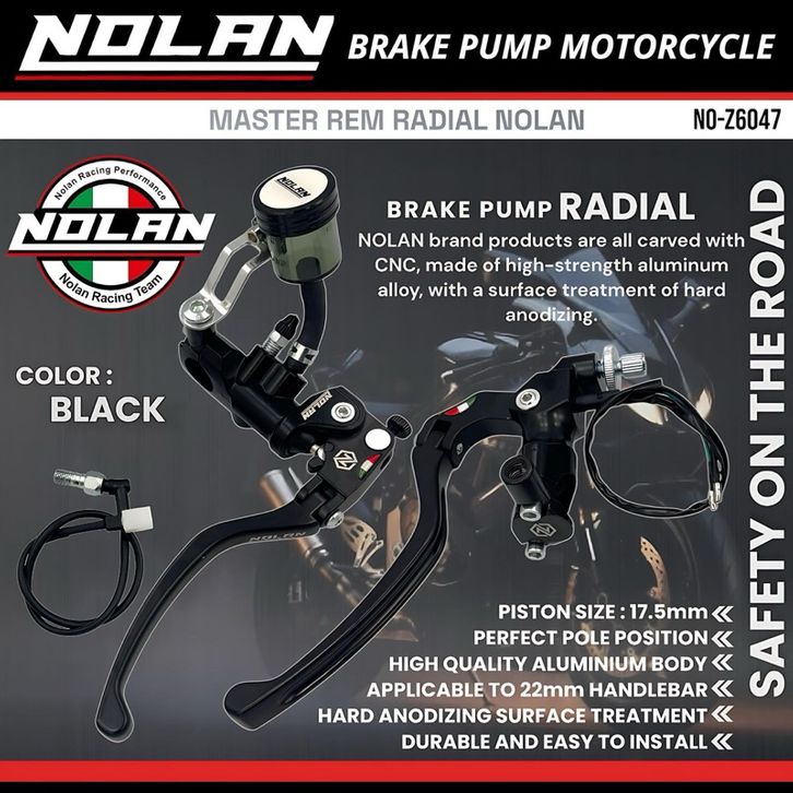 Master Rem Radial Nolan Satu Tabung Piston 17.5MM Alumunium Body Apply 22MM Z6047 - Black - Silver