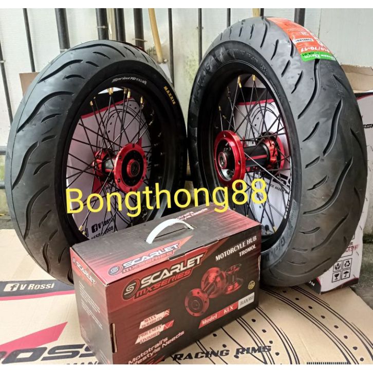 Sepakat Velg Rossi Sprint xd Klx BF D-Tracker Tromol Scarlet jari jari scarlet plus ban tubeless. Maxxis 100 110 120 13