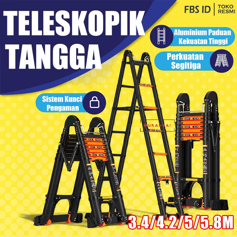 ReaimTangga Portabel 3.4/4.2/5/5.8 Meter Ladder Anti Slip & Stabilizer Cocok