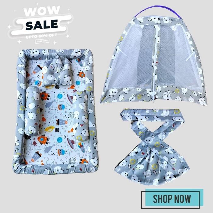 KASUR BAYI SET KLAMBU FIBER PLUS GENDONGAN BAYI BARU LAHIR BAYI BALITA CEWEK COWOK BANTAL GULING BIRU TIDUR LAKI-LAKI - PANDA ABU, PANDA ABU SET GENDONGAN NEWBORN