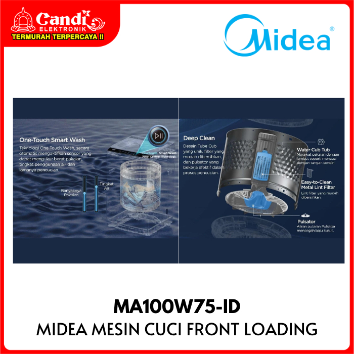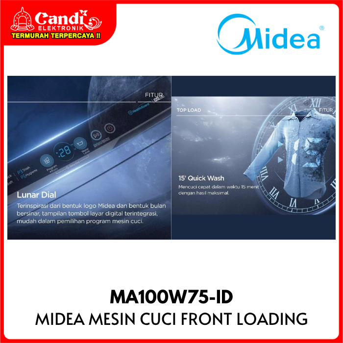MIDEA Mesin Cuci Top Loading 7.5 Kg Touch Smart Wash Lunar MA100W75-ID