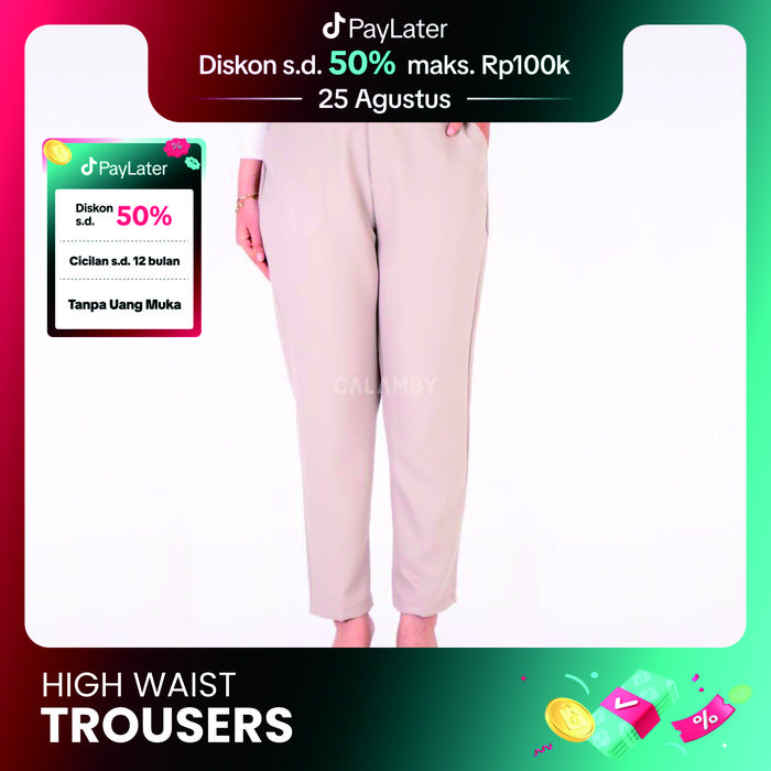CALAMBY - HIGH WAIST TROUSERS WOMAN - BEIGE, S