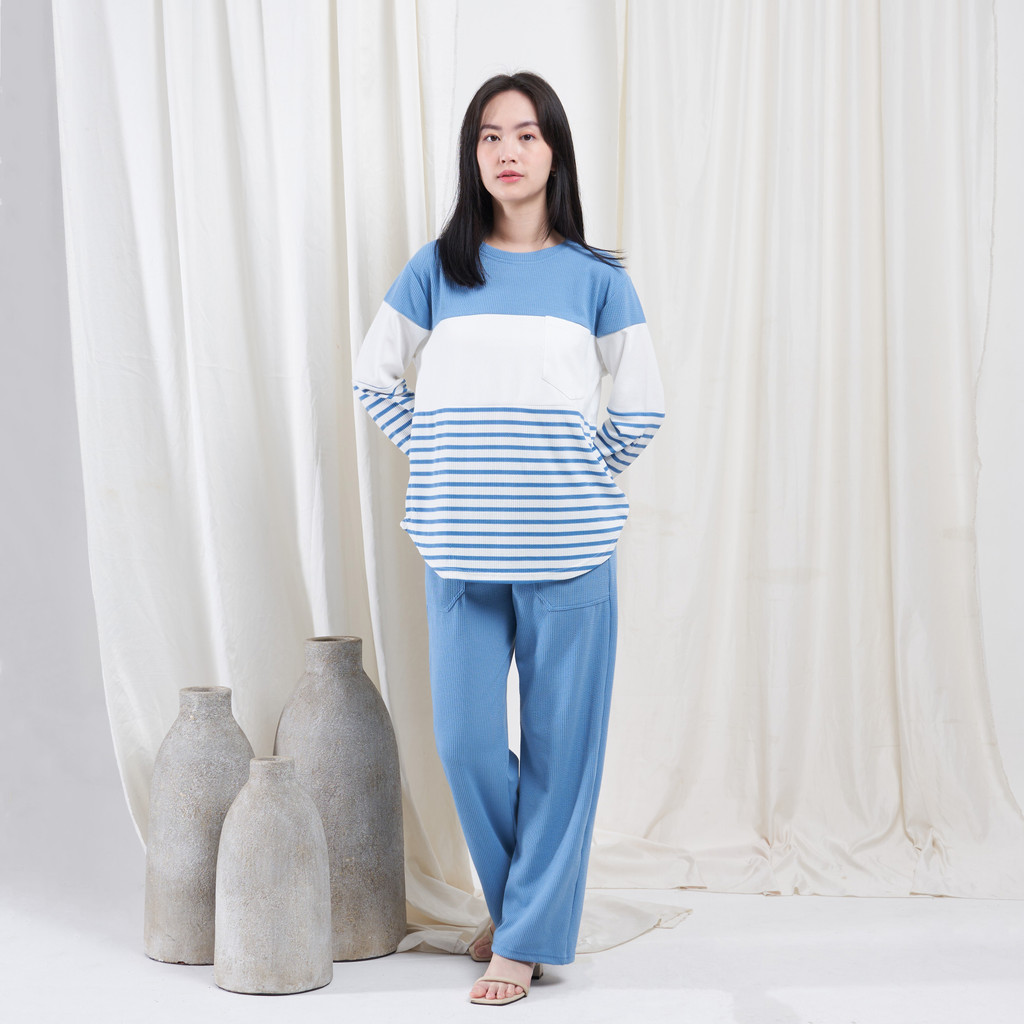 QUEENTIN Setelan Wanita Casual 0767 Stretch Caramel Knit Motif Salur Lengan Panjang