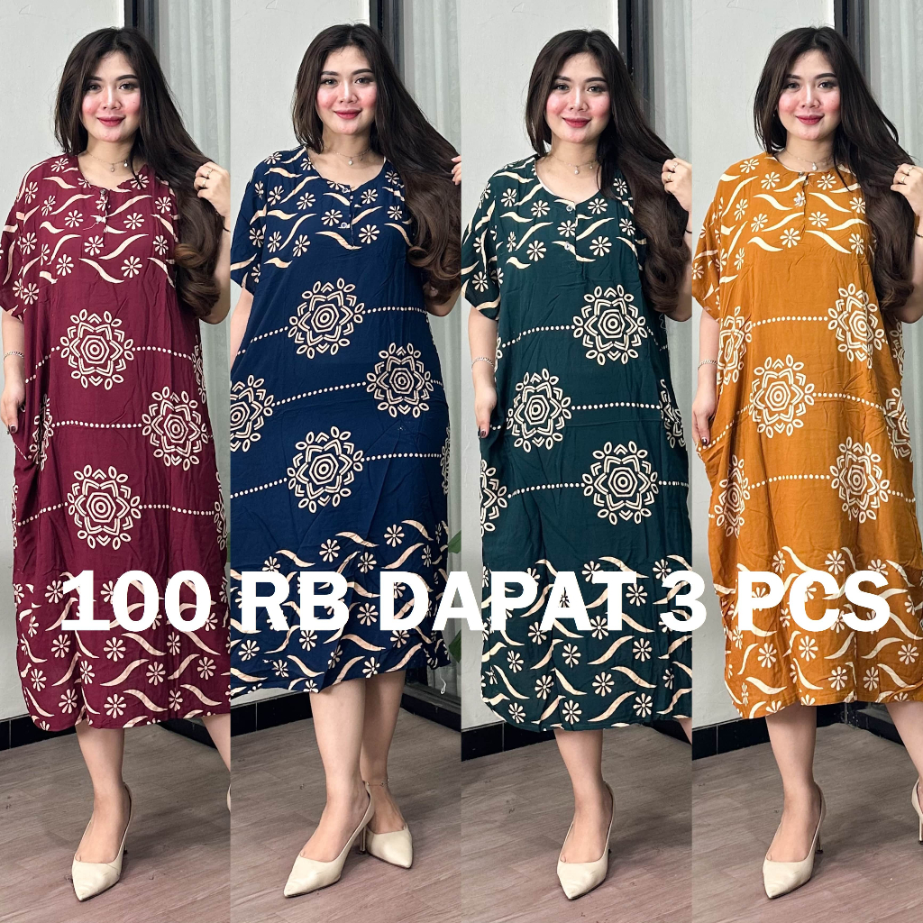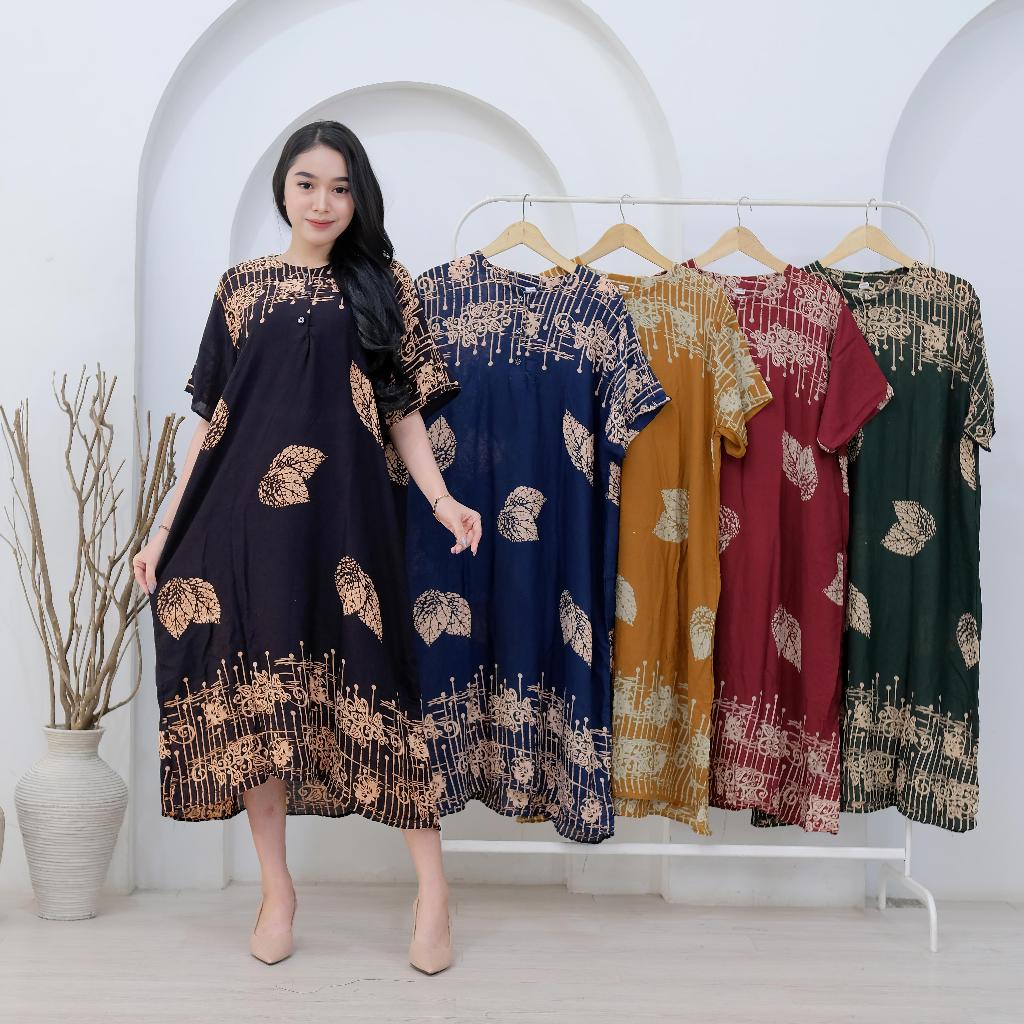 Batik cap Daster kancing Tiga kekinian Jumbo Cabut Motif Salwa - Bahan Rayon Santung LD 120 cm