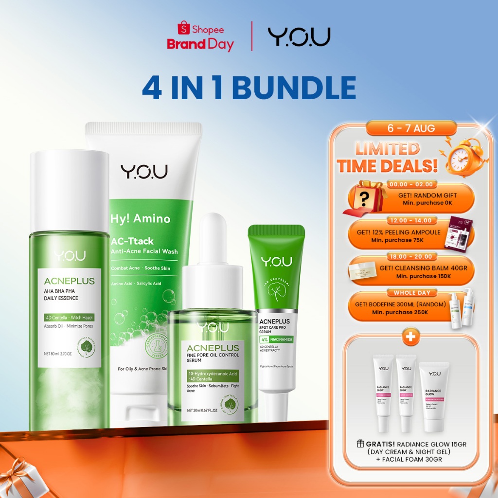 YOU Acneplus 4in1 Bundle Exfoliating Toner, Acne Spot, Serum, Hy Amino Anti Acne Facial Wash Serum Jerawat Obat Totol Jerawat Paket Skincare