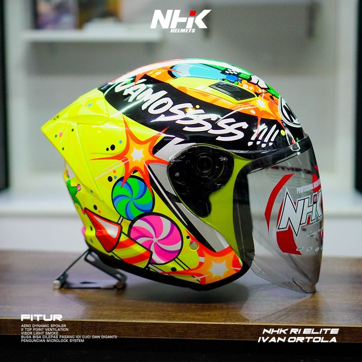 Nhk R1 Elite Rider Replika Ivan Ortola #5 Yellow Flourecent Helm Motor Half Face R One Elit Motif Gp Edition