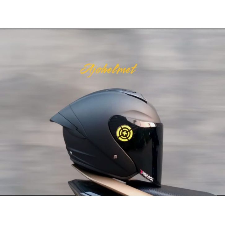 HELM NHK N1 MAX SOLID BLACK DOP, PAKET GANTENG VENOM VISOR FLAT,SLOT INTERCOM, SINGLE VISOR SMOKE, HELM HALFFACE