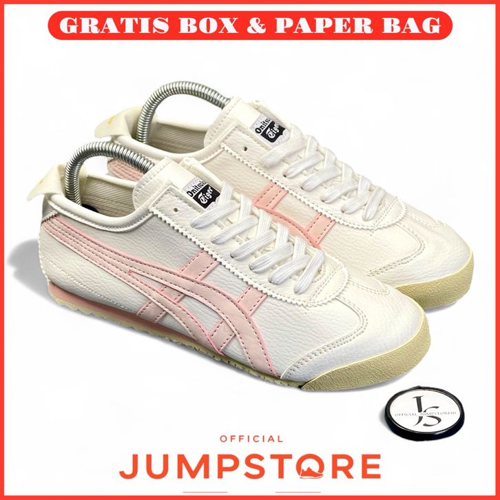 Promo BISA SEPATU ONITSUKA TIGER WANITA TALI WHITE PINK Keren