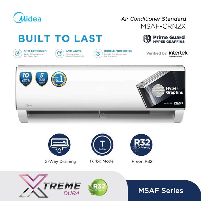 [FREE PACKING KAYU KARGO] Midea AC Split 1/2 PK (0.5 PK) Standard R32 Series MSAFE-05CRN2X