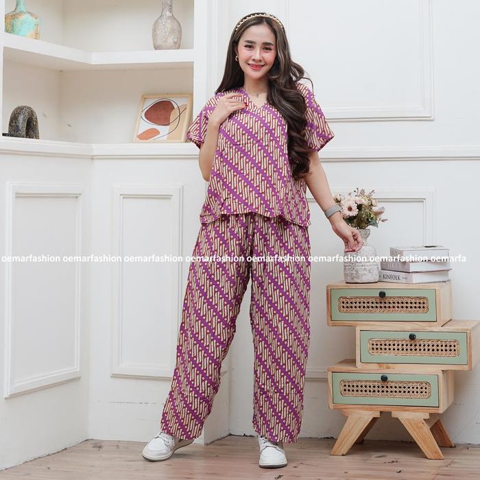 SETELAN CELANA PANJANG KULOT MOTIF SENO || SETELAN BATIK LD 120 PANJANG CELANA 90 || BAHAN RAYON - HITAM