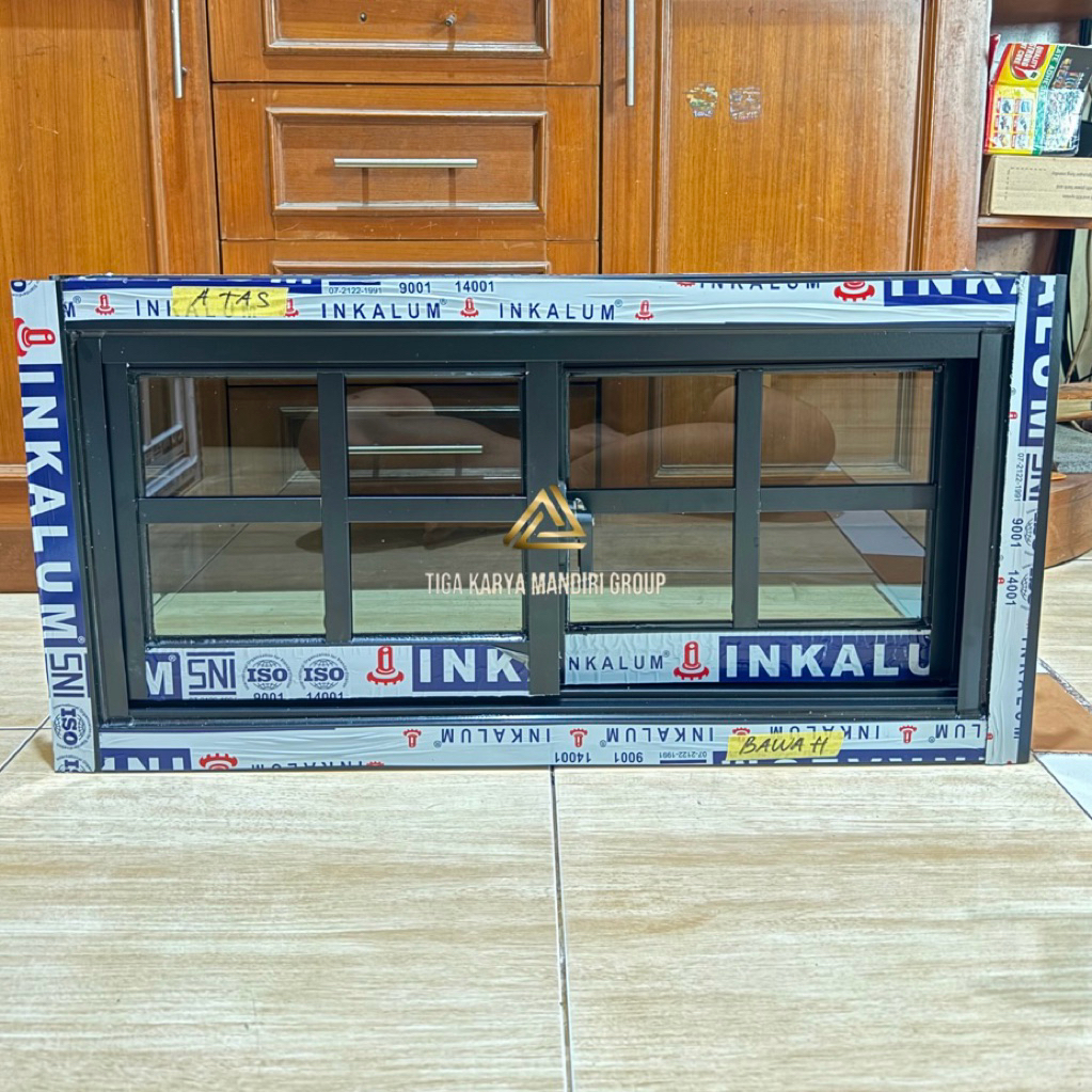 (JENDELA UK 120X100 SLIDING/ GESER Alumunium Minimalis/Minimalist Ornamen List kotak’’ Ukuran 120X100 Bisa CUSTOM UKURA